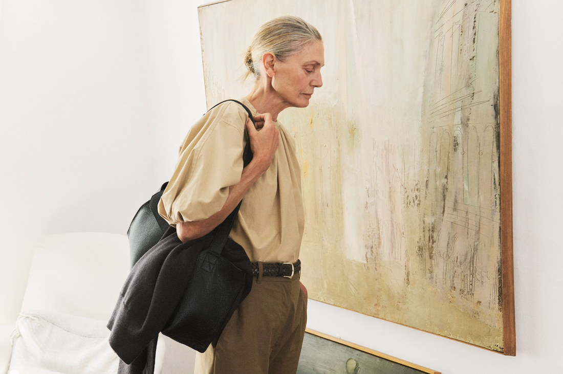 Key shoes this season include the return of the women’s Moon shoe, alongside two new unisex styles: the Korine, an elasticated slipper and the Woodrow, an update on the classic desert boot, both in suede and deerskin. Meanwhile, the Studio Nicholson bag offer, including the Doublet, Shiboru and Airport bags all feature in the latest Autumn 25 campaign shoot alongside the Pythagoras merino rib scarves and hats.
