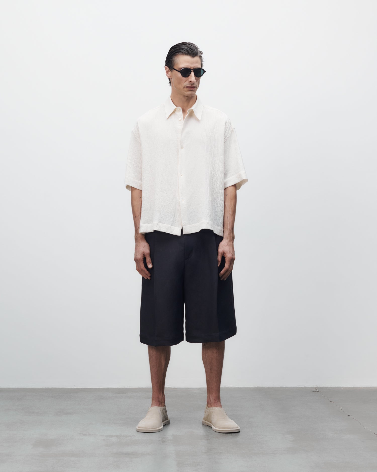 "This could be our purest collection yet. I looked at the traditional Japanese 'Gakuran' boys school uniform for inspiration. For me, their specific darkest navy palette setups, subtly accented with their crisp white collars peeking out, had this absolute purity to it which I loved." – Nick Wakeman, Founder & Creative Director of Studio Nicholson.