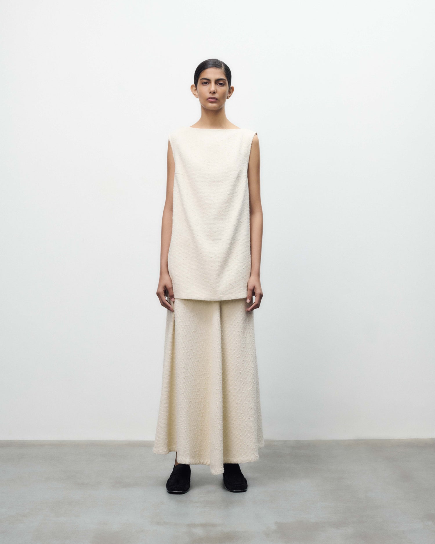She says, “As always, it began with excitement over fabrics. Along the way, various subplots emerged which have given way to a collection that features a lot of long silhouettes, a kind of softness, and a handful of strong yet steady wardrobe archetypes."