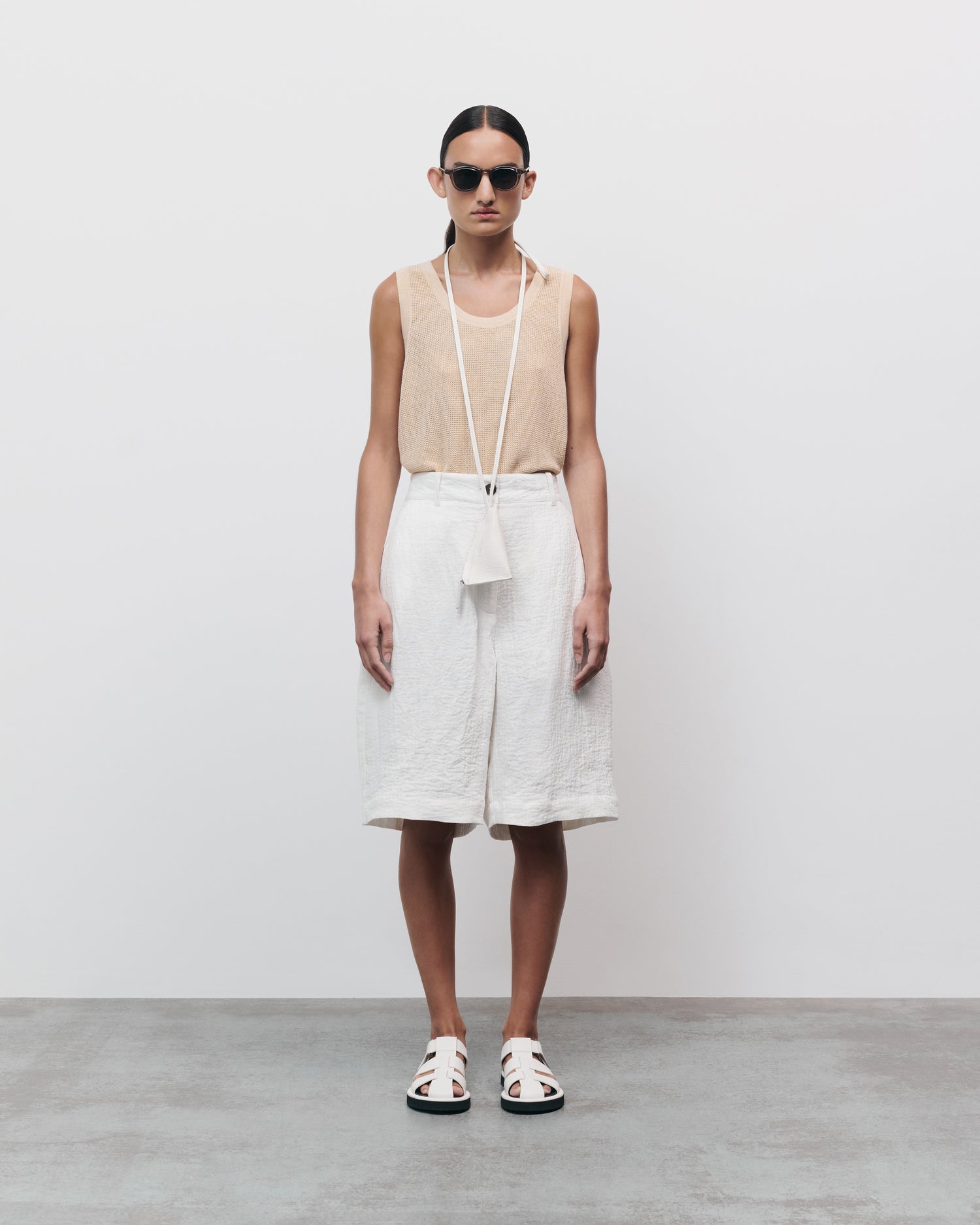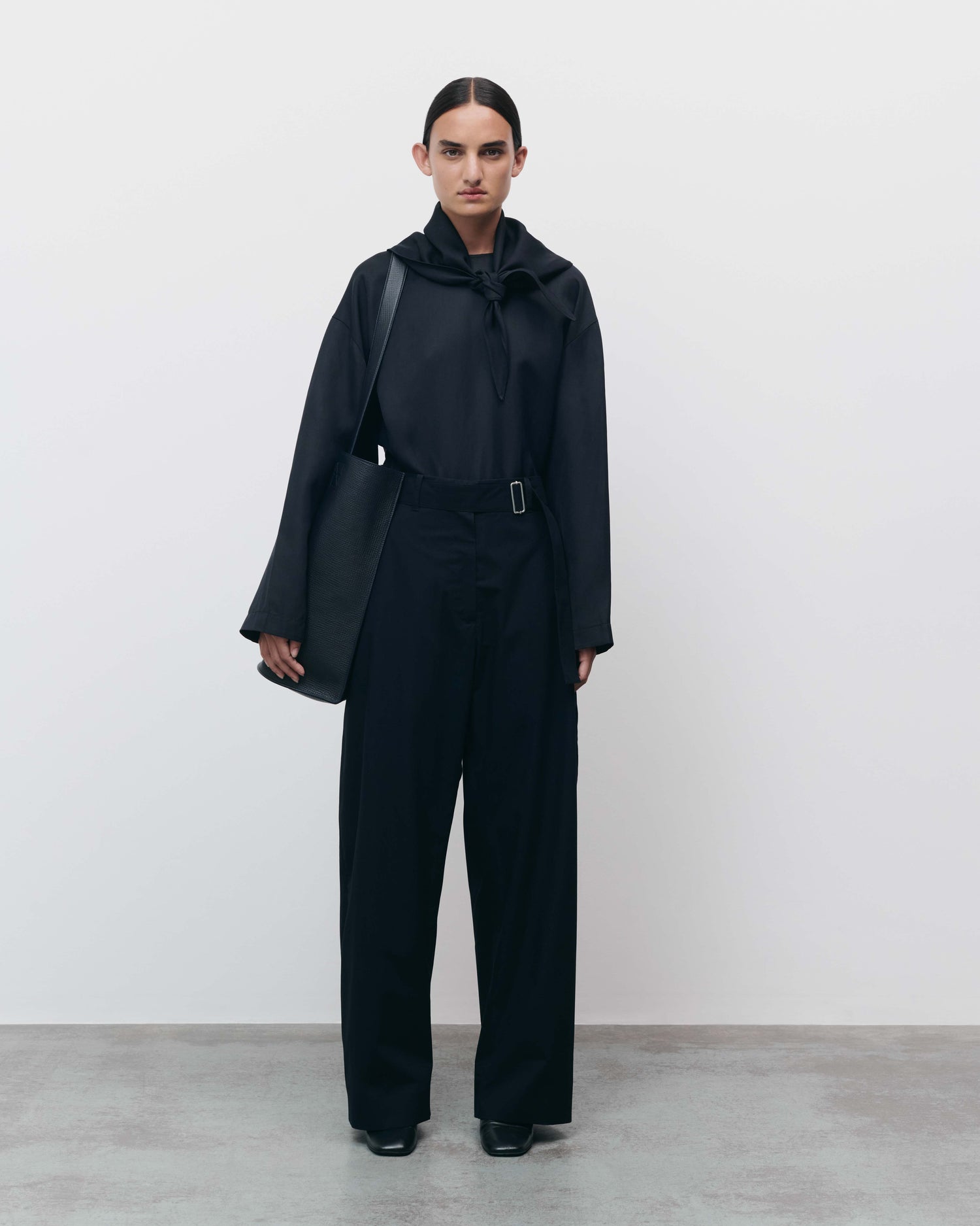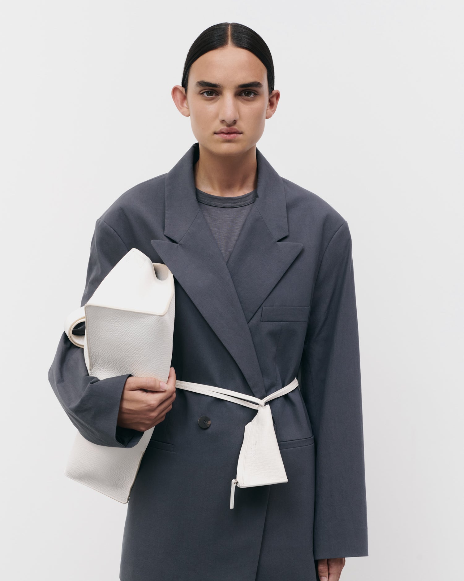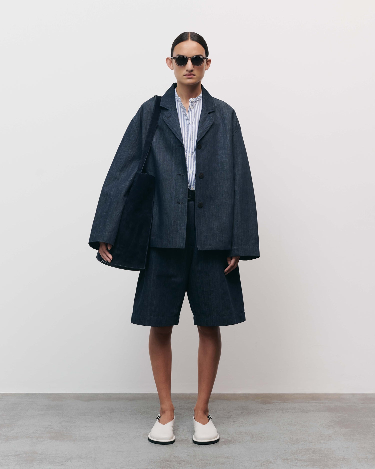 Frayed hems, drawstring waistbands, lightweight Harrington jackets, long sundresses, roomy short-shorts and gauzy shirts all play central roles in this new collection. The graphic restraint of monochromatic looks is offset with inviting textures, and a typically considered silhouette that is also supple and generous.