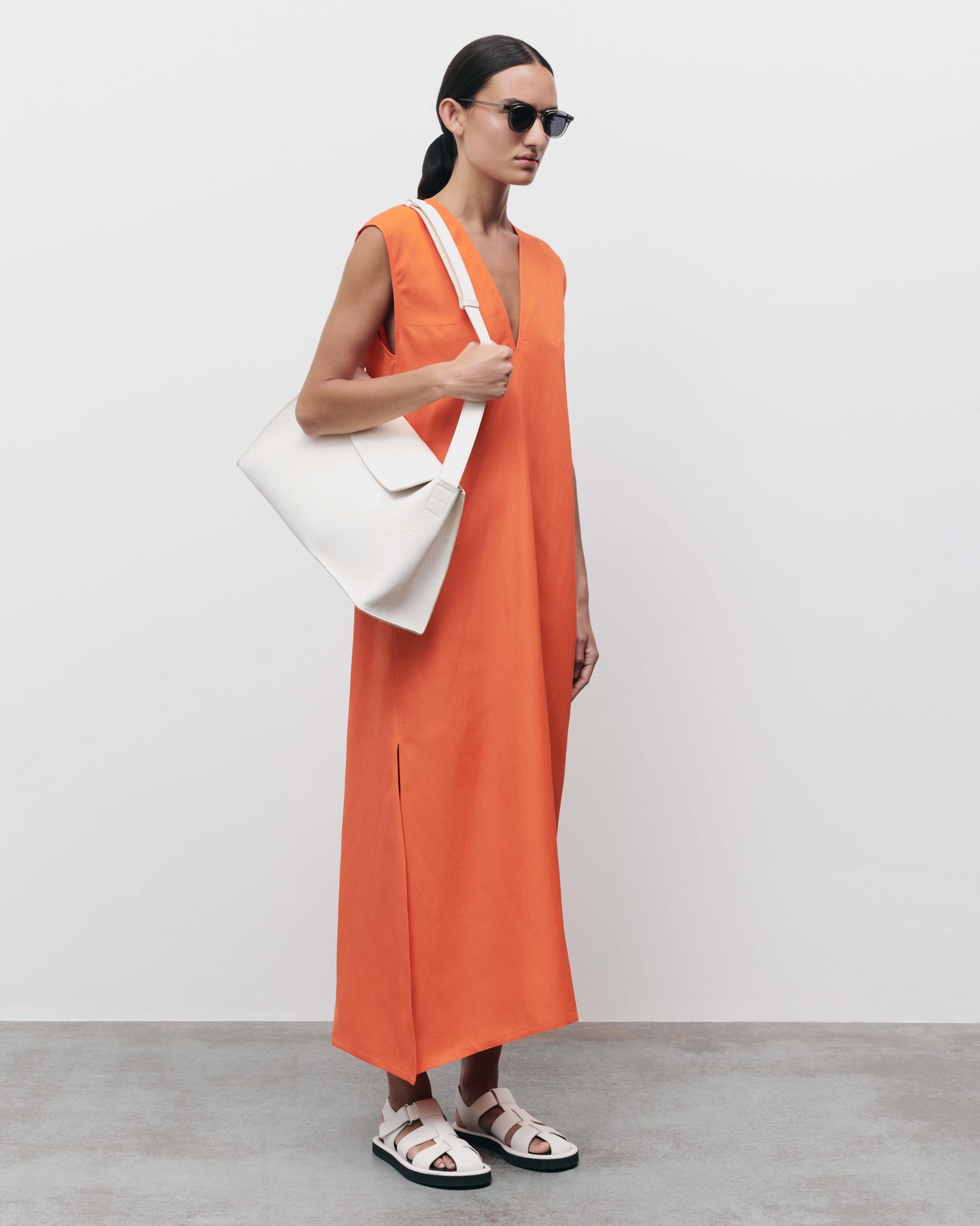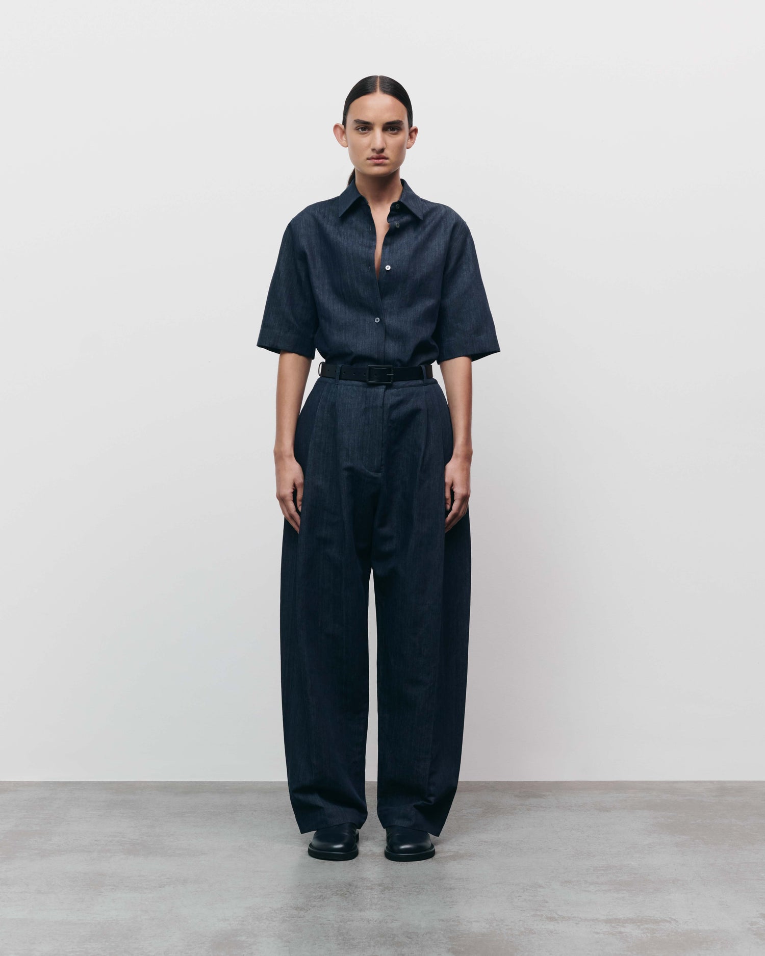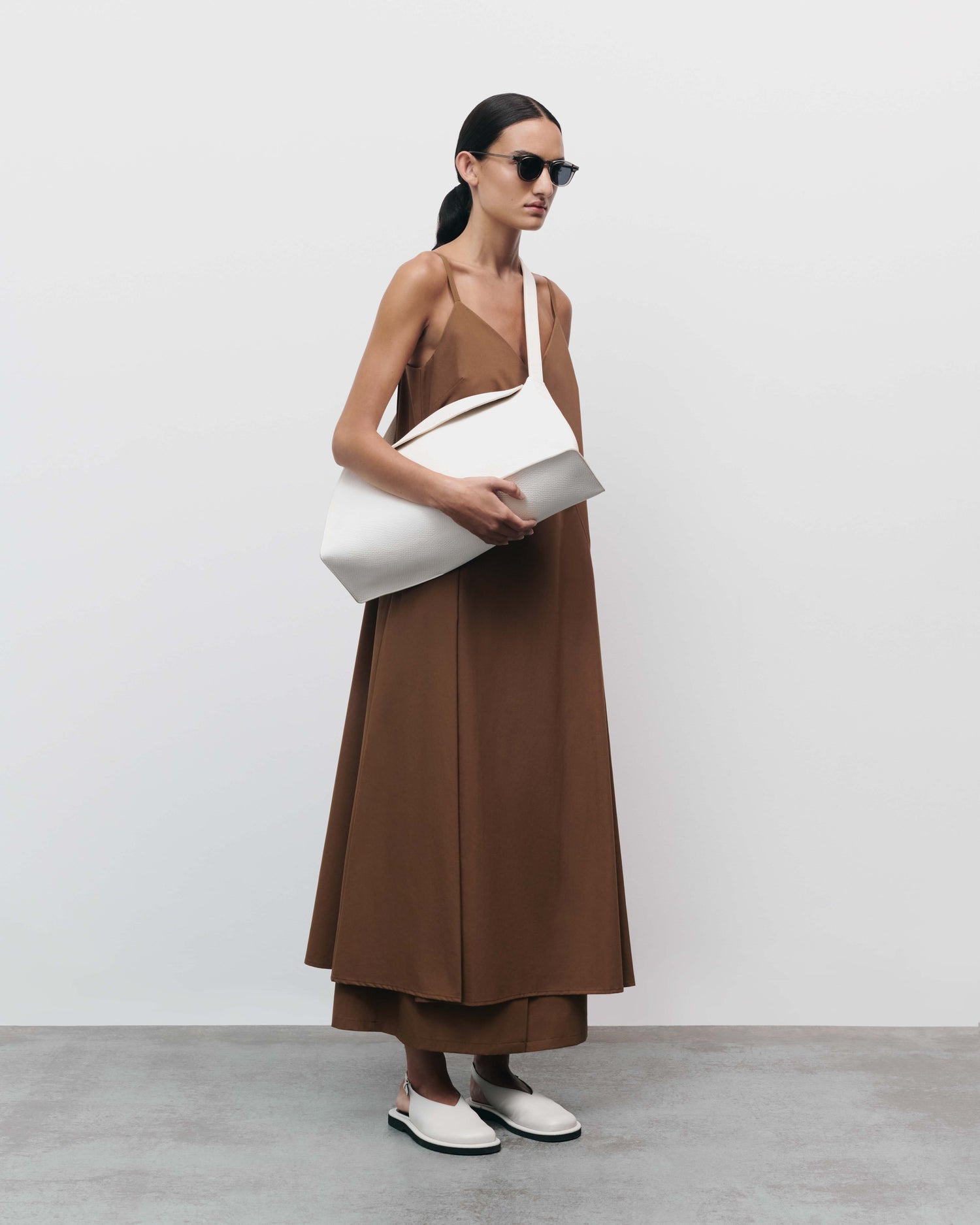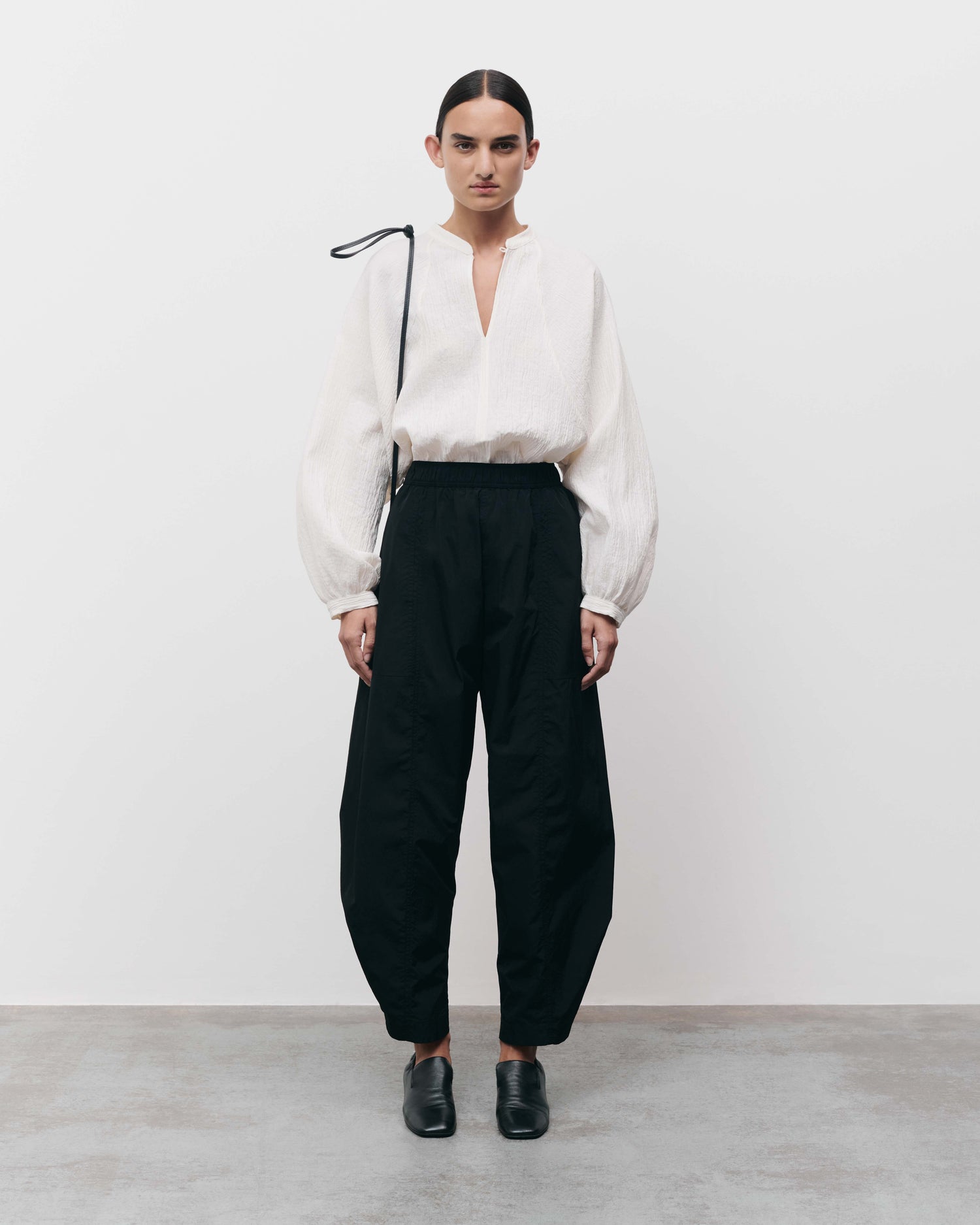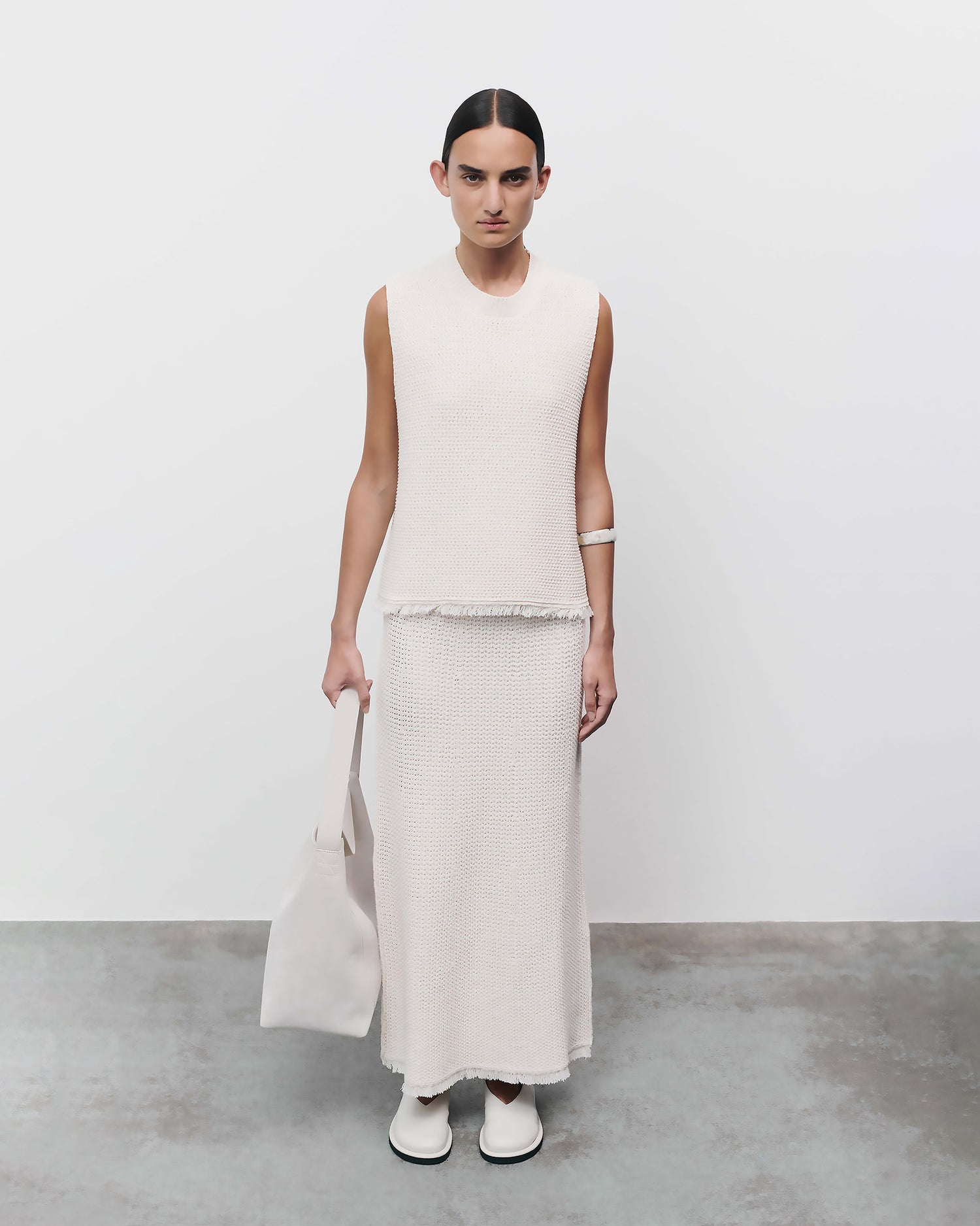 Frayed hems, drawstring waistbands, lightweight Harrington jackets, long sundresses, roomy short-shorts and gauzy shirts all play central roles in this new collection. The graphic restraint of monochromatic looks is offset with inviting textures, and a typically considered silhouette that is also supple and generous.