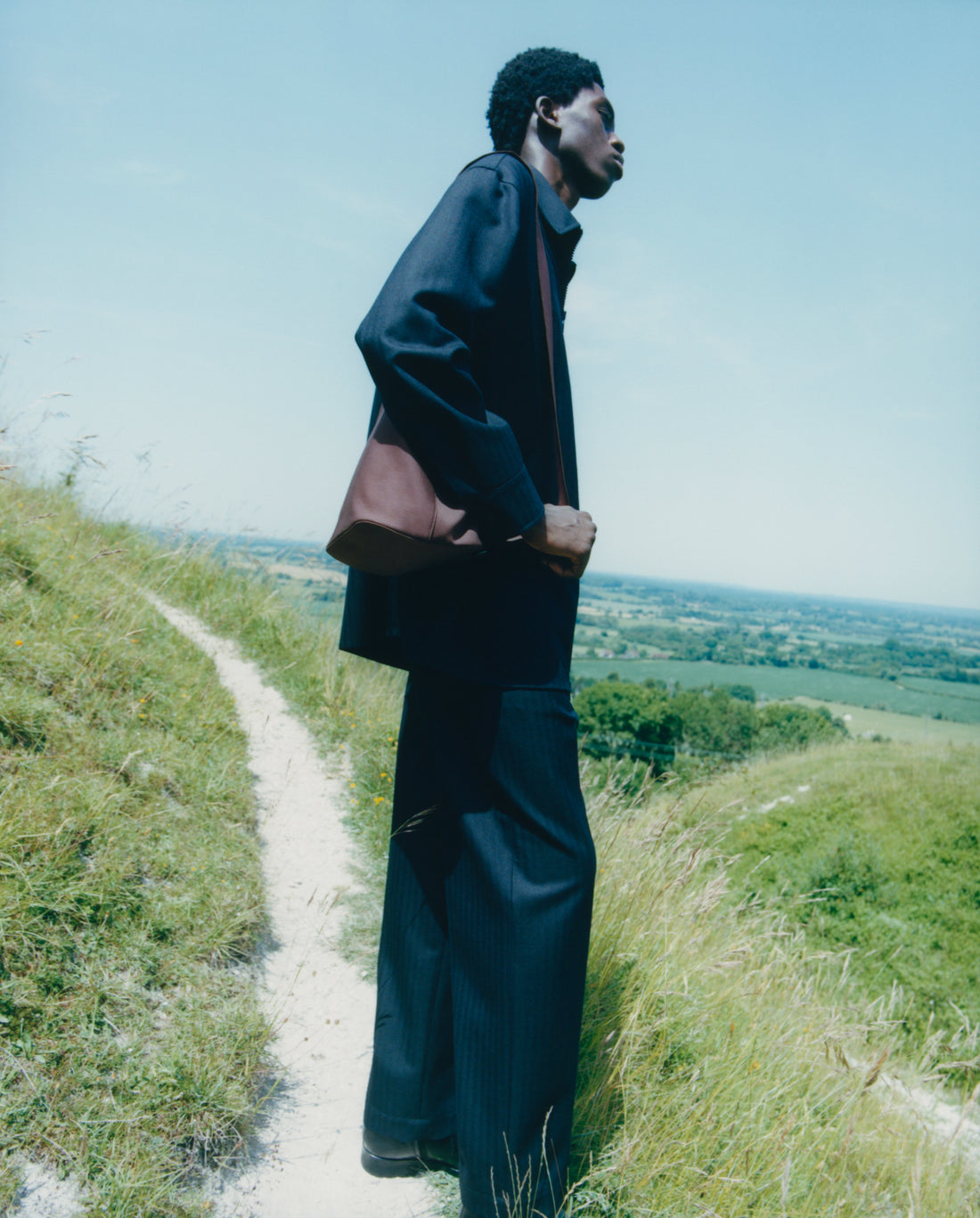 Corduroy, the winter mainstay, is represented with the straight-legged Greene Pant and the Wight Jacket in evergreen Ivy. The calf-length Sampson Coat has been made in cocoa coloured recycled wool and works as an all-encompassing thermal envelope for days when the temperature takes a nosedive. Black Grape leather molecules are covered with the Kennedy Jacket.