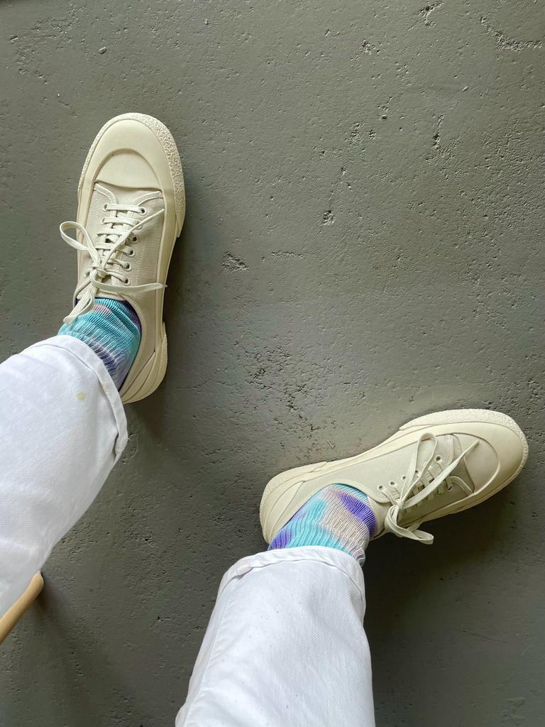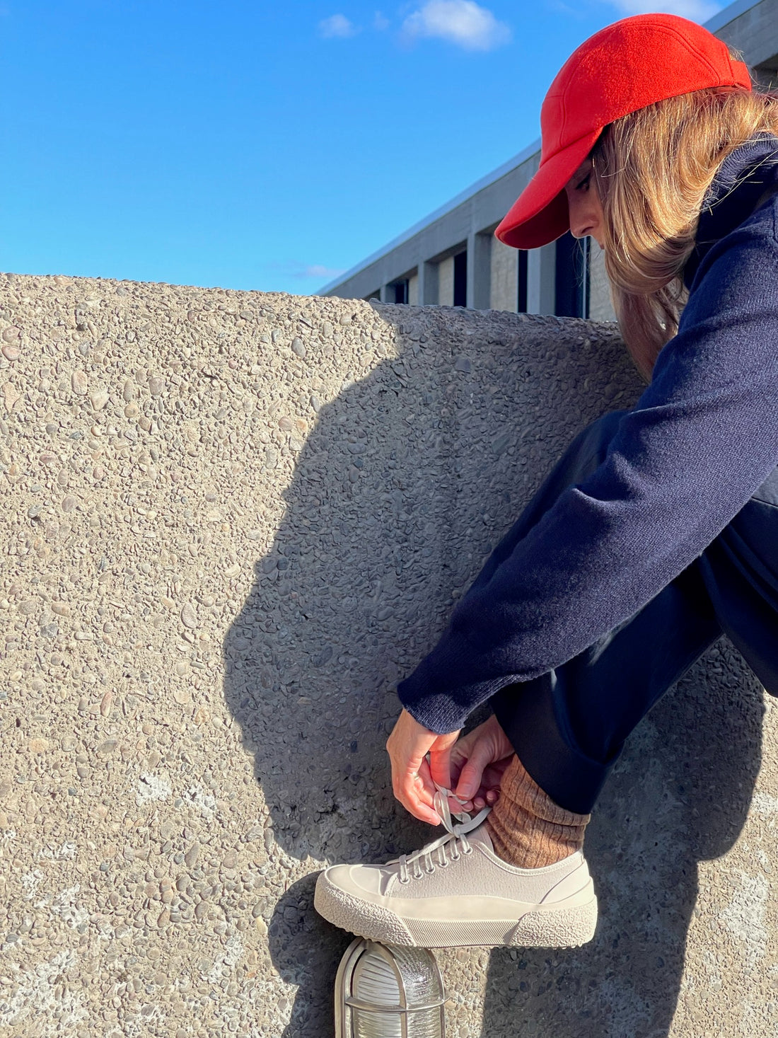 Co-founder and creative director of Commission Studio, Christopher Moorby, echoes my love letter to the Sharp low tops. A former Moonstar devotee, he shifted allegiance over to the Sharp shoes for a catalogue of (very valid) reasons. As a bloke who likes to run, he’s careful about his footwear choices. Nobody needs pre-marathon bunions. Track days aside, Chris admitted that he doesn’t “have the energy (or inclination) to keep up with the sneaker market. I hate the whole idea of the resale thing; new colourways weekly or entering a raffle to try and ‘win’ a chance to buy the latest designs.