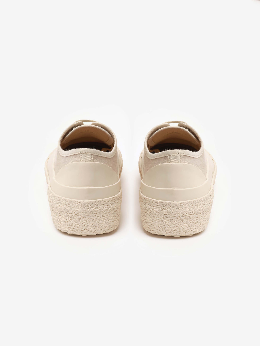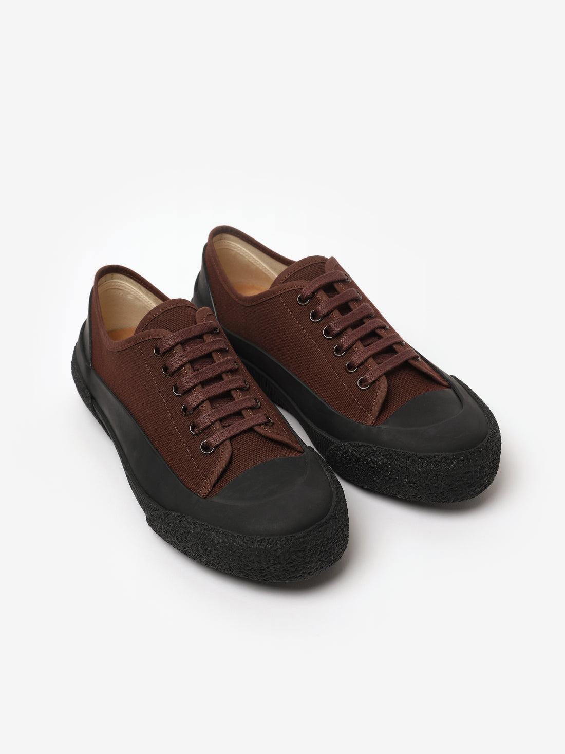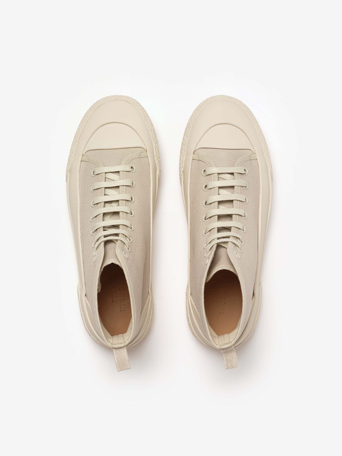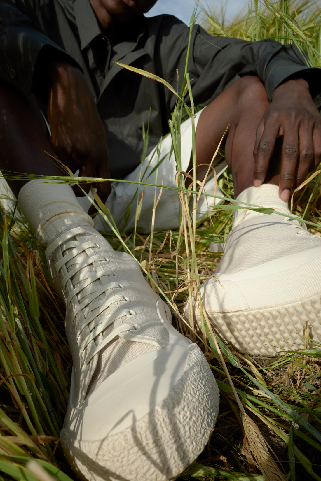 That JND (just noticeable difference) is what differentiates the new Studio Nicholson Sharp and Numbers canvas shoes from your average plimsoll. Originally, plimsolls were developed back in the 1830s for wearing on the beach - these versions are quite the opposite. Seriously robust, they’re engineered from a cotton canvas so densely woven and strong, that they are fit for purpose; even when the weather turns rotten. Not to mention the layers (and layers) of vulcanised natural rubber - all applied by hand in Spain, by a small factory known for producing some of the world’s finest canvas shoes.