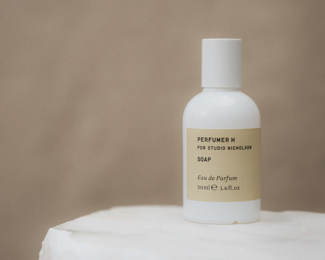 In collaboration with British perfume house Perfumer H, Studio Nicholson presents SOAP Eau de Parfum and Incense.