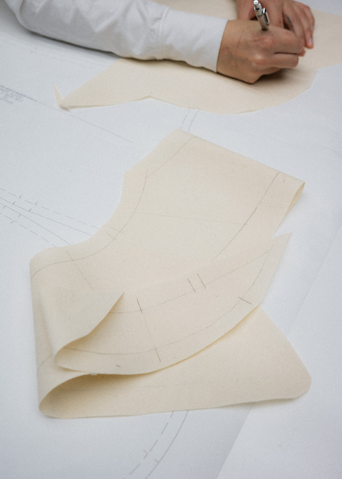 Discussion around a collaboration between their two brands has been longstanding - Harris has worn Studio Nicholson as part of her personal uniform since the brand launched in 2010 whilst Perfumer H candles have long fragranced Studio Nicholson’s stores. Both are stirred by the senses; Harris smells everyone and everything - “I imagine Lyn up a mountain in China smelling the ground,” smiles Wakeman. Meanwhile, Wakeman has always favoured haptic fabrications which might sound crunchy in movement or feel like paper or marble to touch.