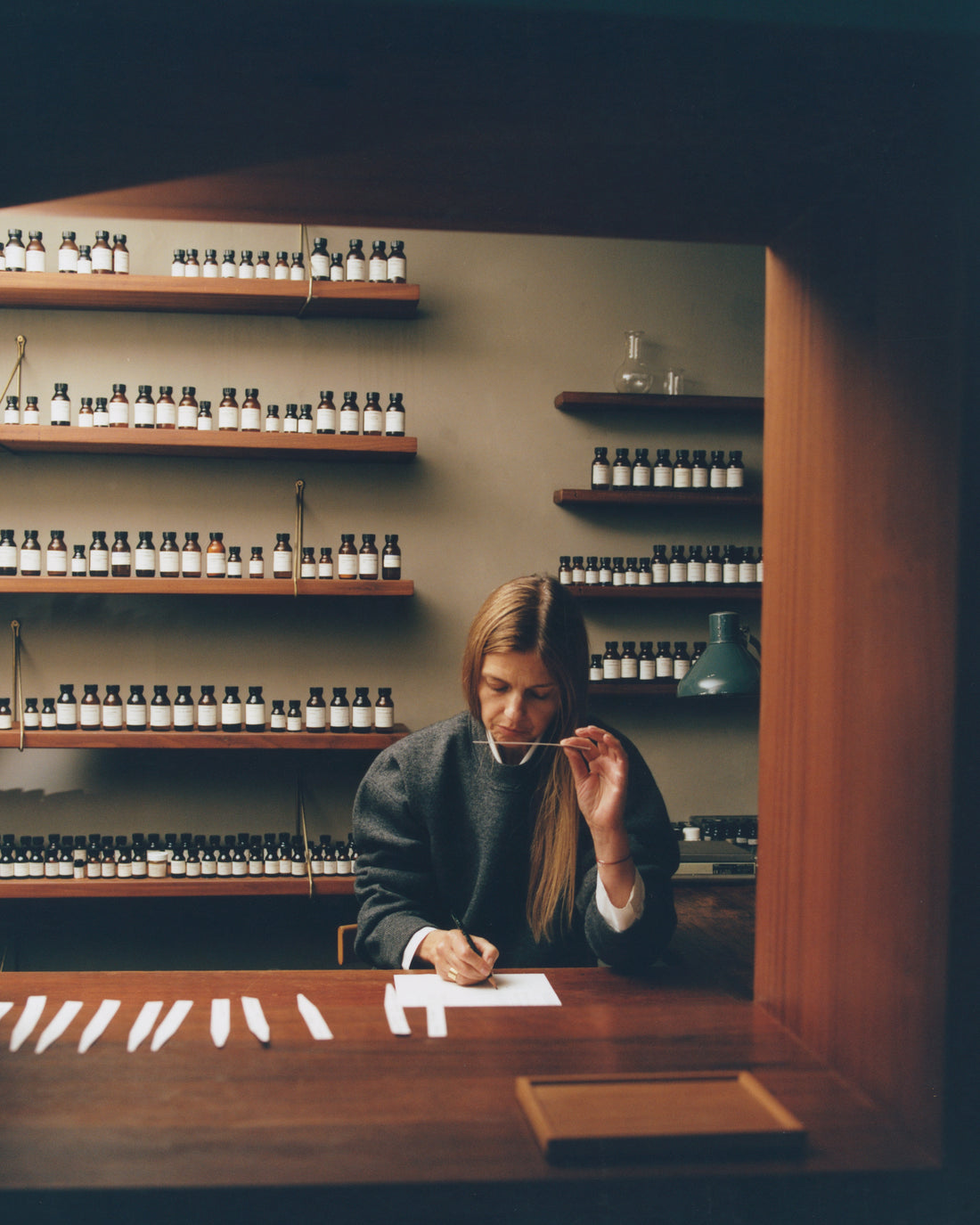 “I was looking at formulas and smelling my work from yesterday, comparing some trials and setting up my day creatively. I was talking to my son. We’re quite similar. He loves clothes actually, we share each other’s wardrobes, which is quite special.”