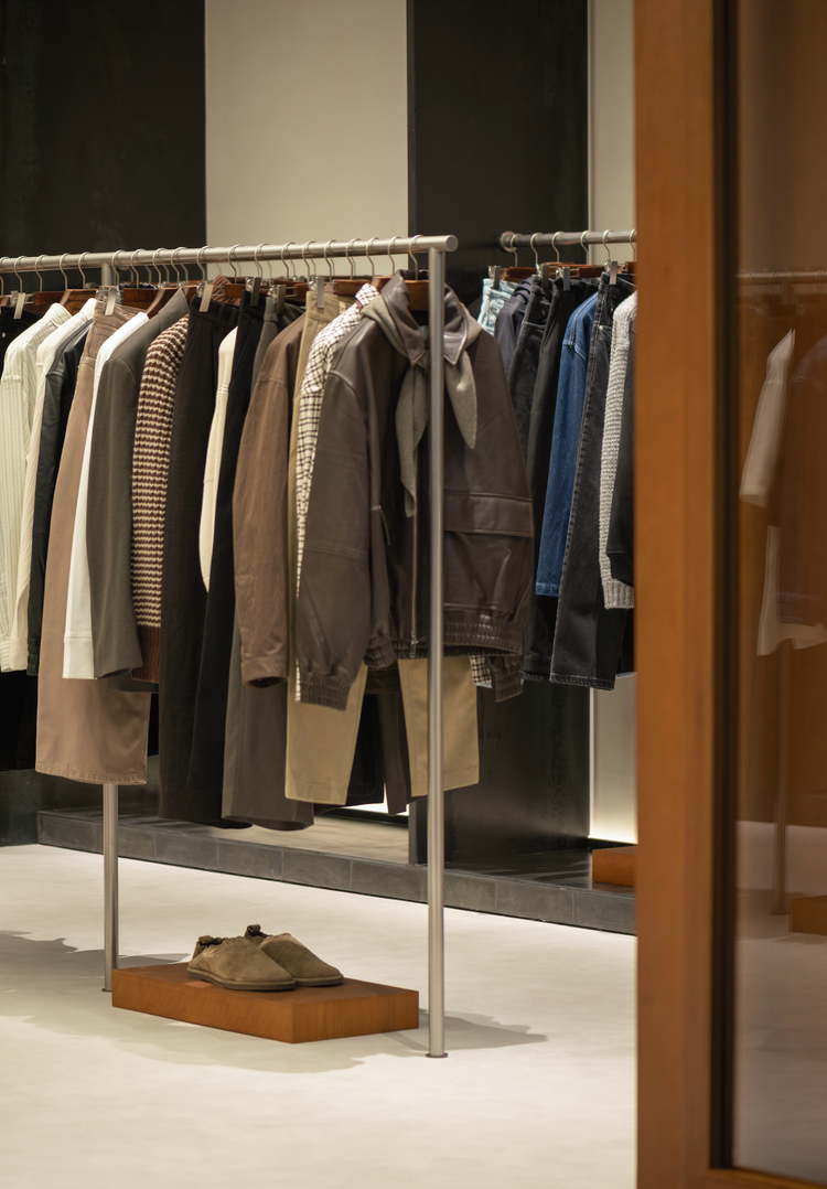 The Studio Nicholson Soho store team offer modular wardrobe styling advice, gift wrapping and garment alterations for in-person purchases.