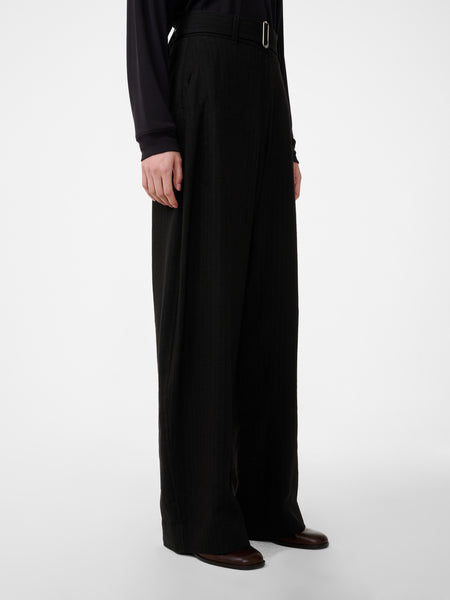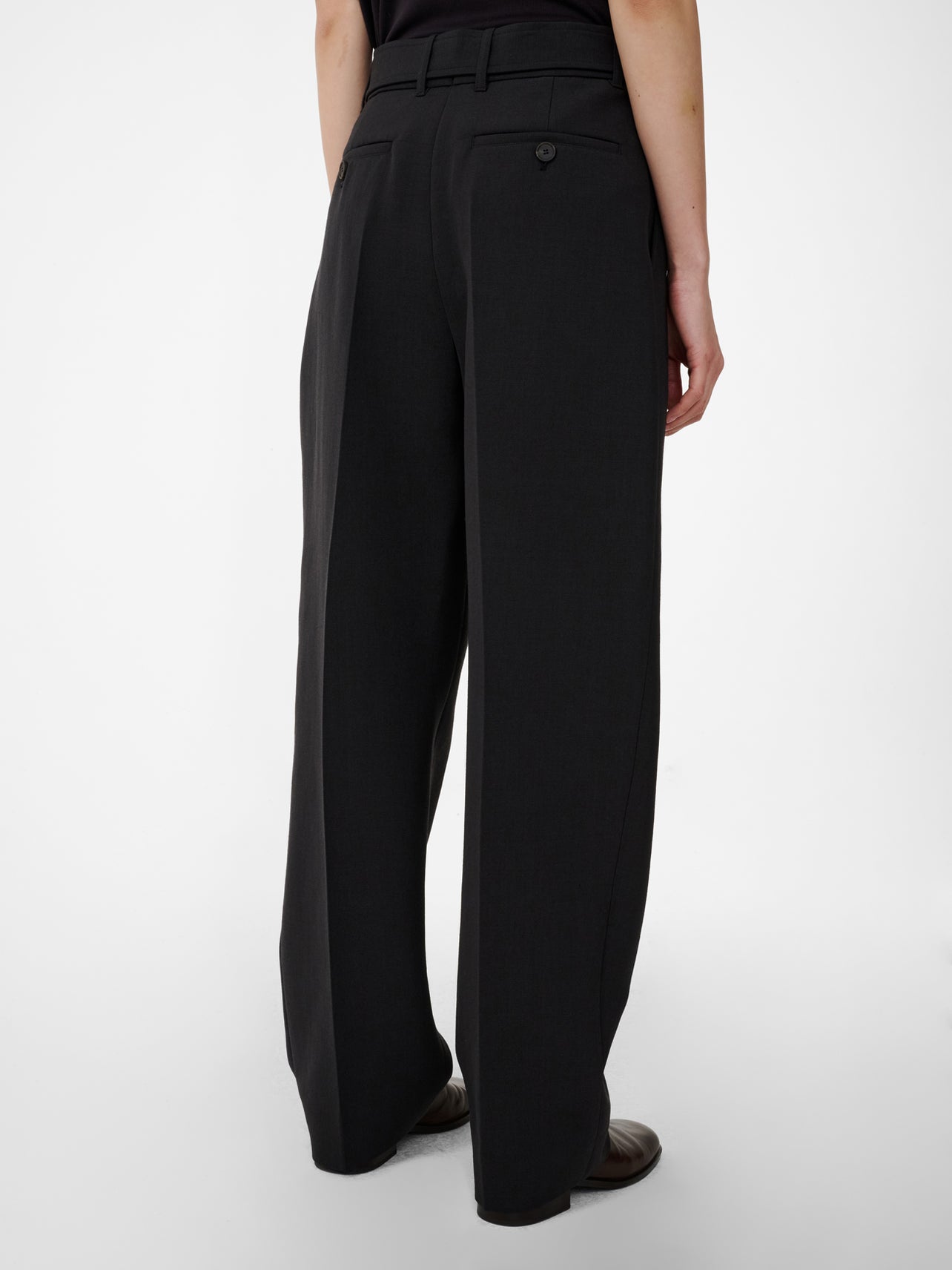 An unassuming wardrobe pillar, the black trousers are given a modern update with Hibi. It is constructed with a belted waist and double reverse pleats, further accentuating the fabric choice.