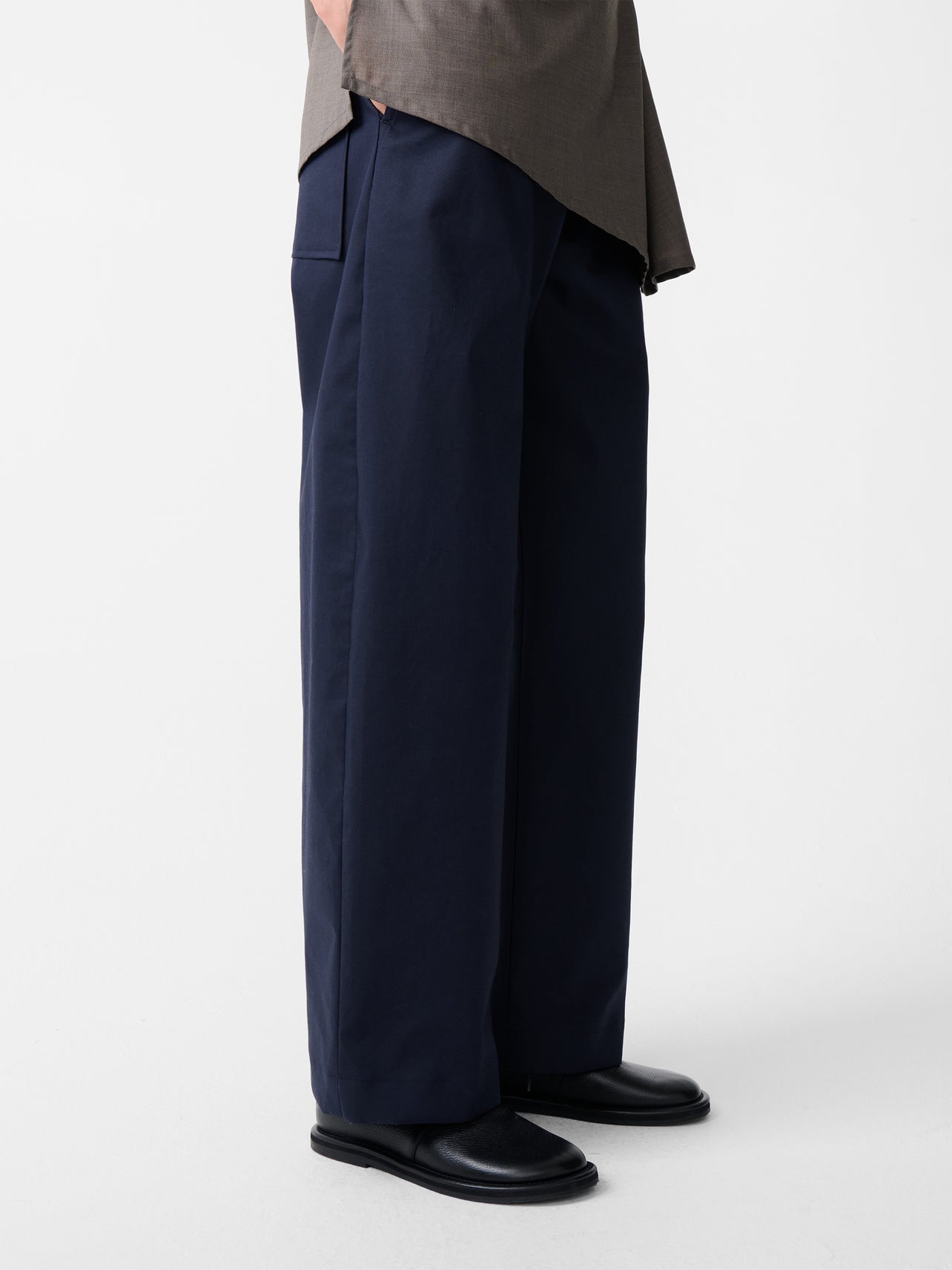 A compact cotton canvas carefully chosen for its irregular appearance that nods to Studio Nicholson’s longstanding workwear influences. They’re made with an elasticated belted waist and an adjustable drawcord hem, allowing you to create a tapered fit.