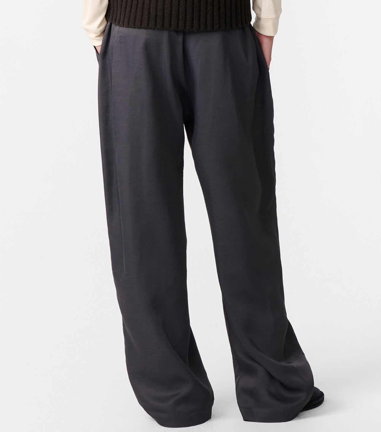 Studio Nicholson’s contemporary tailoring is evident in the Lira pant. Drawing on the slouchy tailoring prevalent in the 90s, Lira is shaped with a lower rise waist and a shorter length that highlights the curve in the leg.