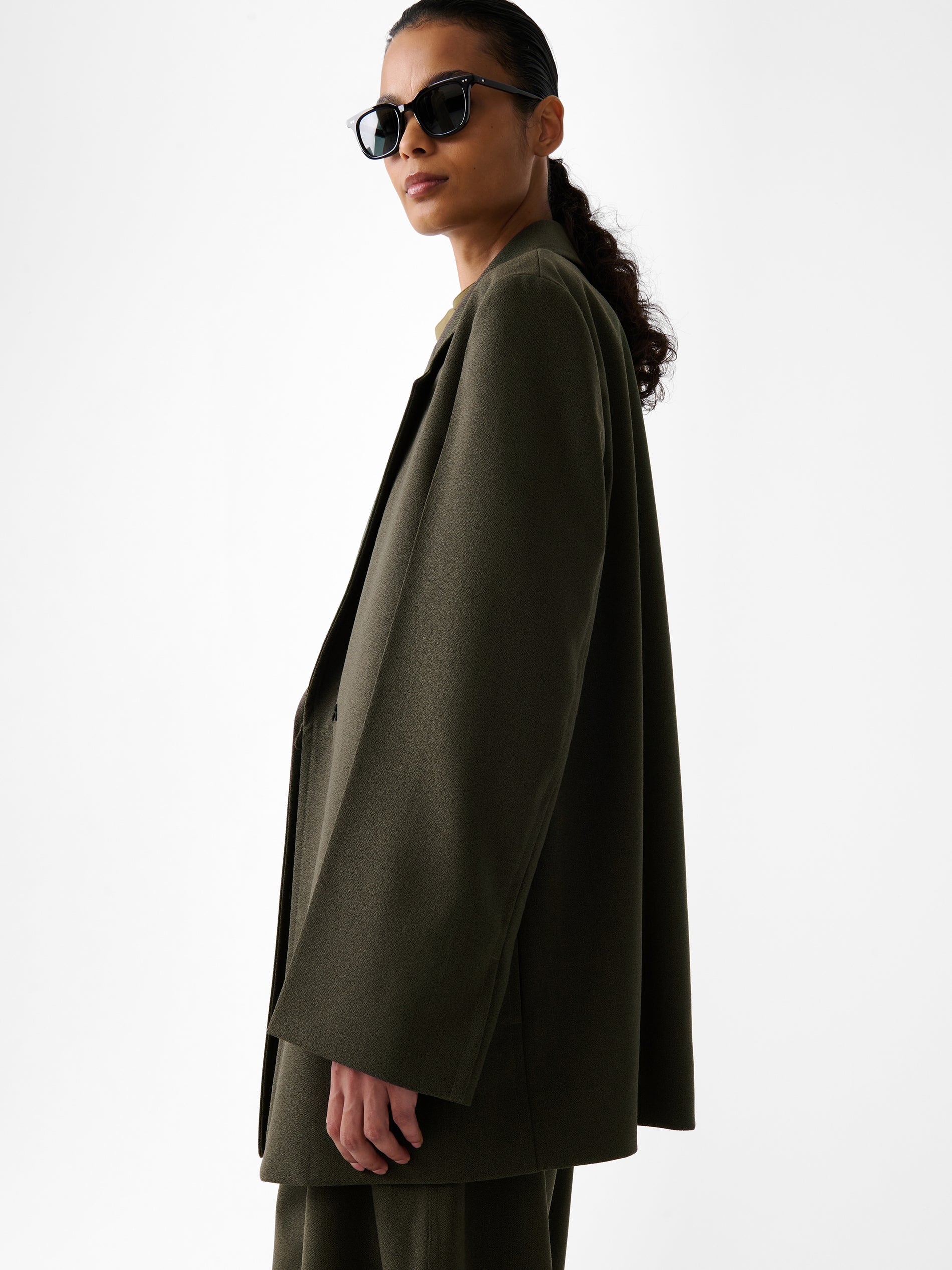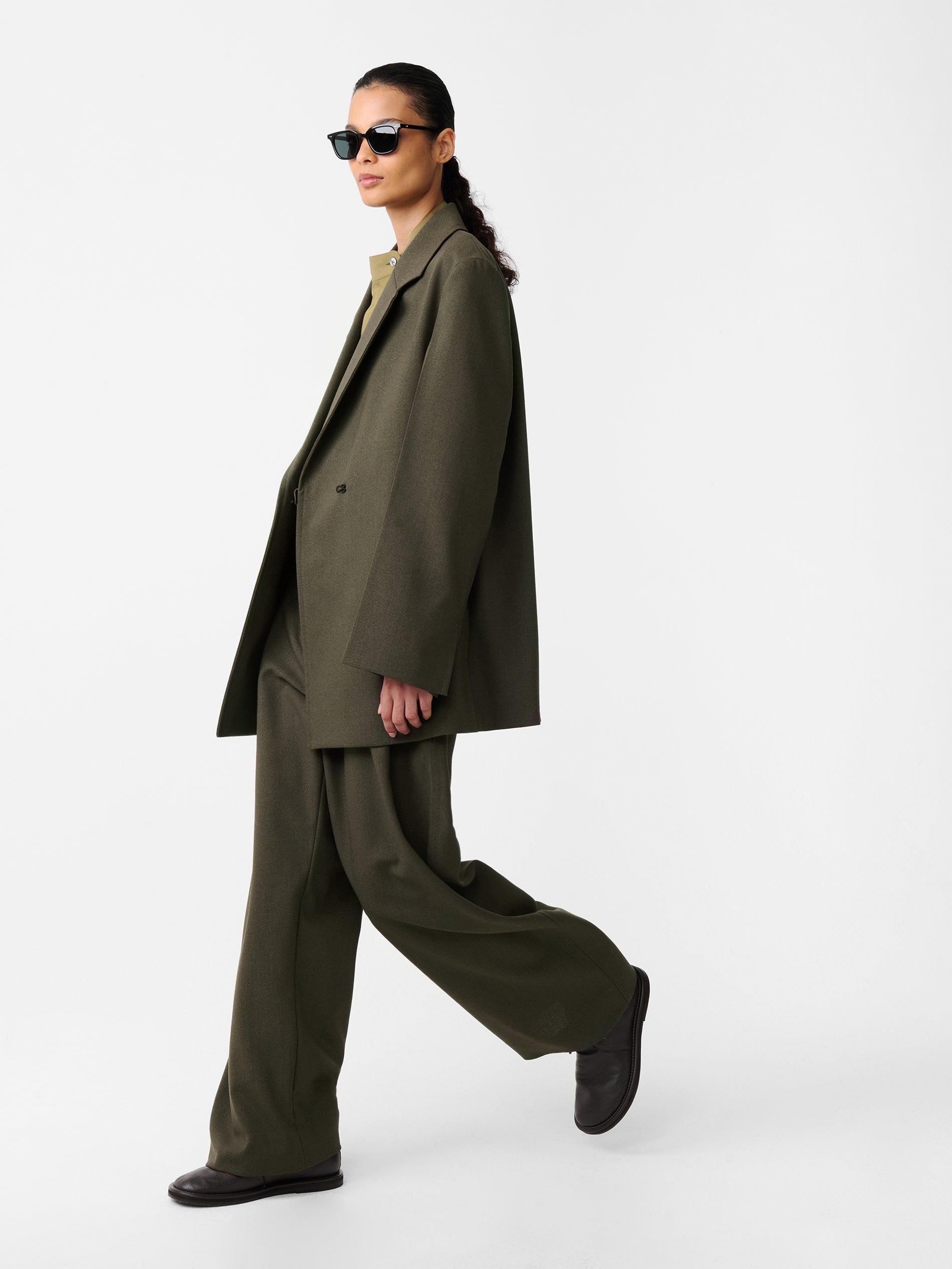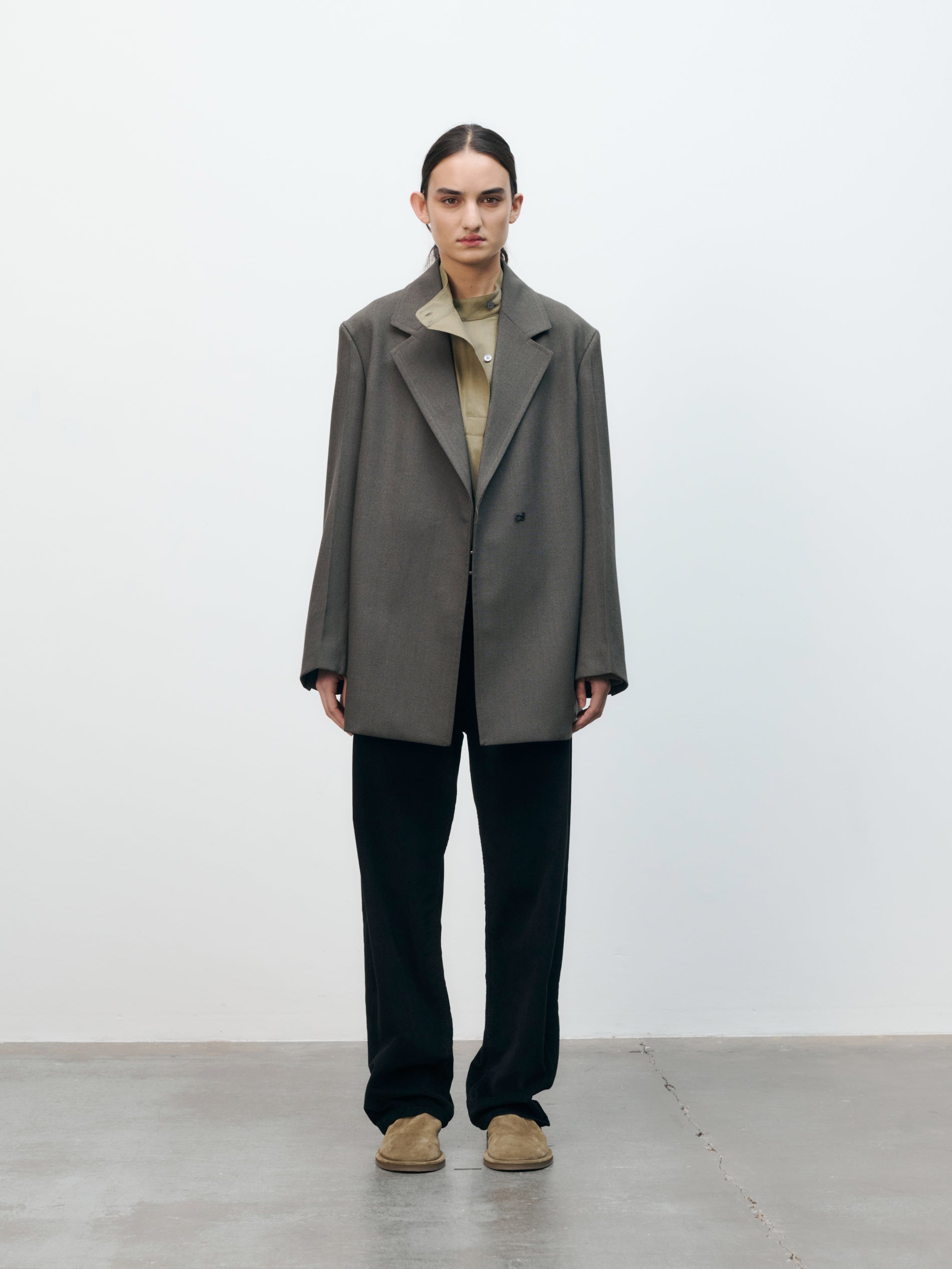 Studio Nicholson’s considered tailoring is evident in this Araz jacket. It’s deftly cut from our grain de poudre – a dry, technical fabric made with combed wool yarns that recalls classic tailoring cloth – and features notch lapels, a hook fastening and pressed creases in the sleeve. Araz is fully canvassed to ensure a durable construction that will adapt to the wearer over time.