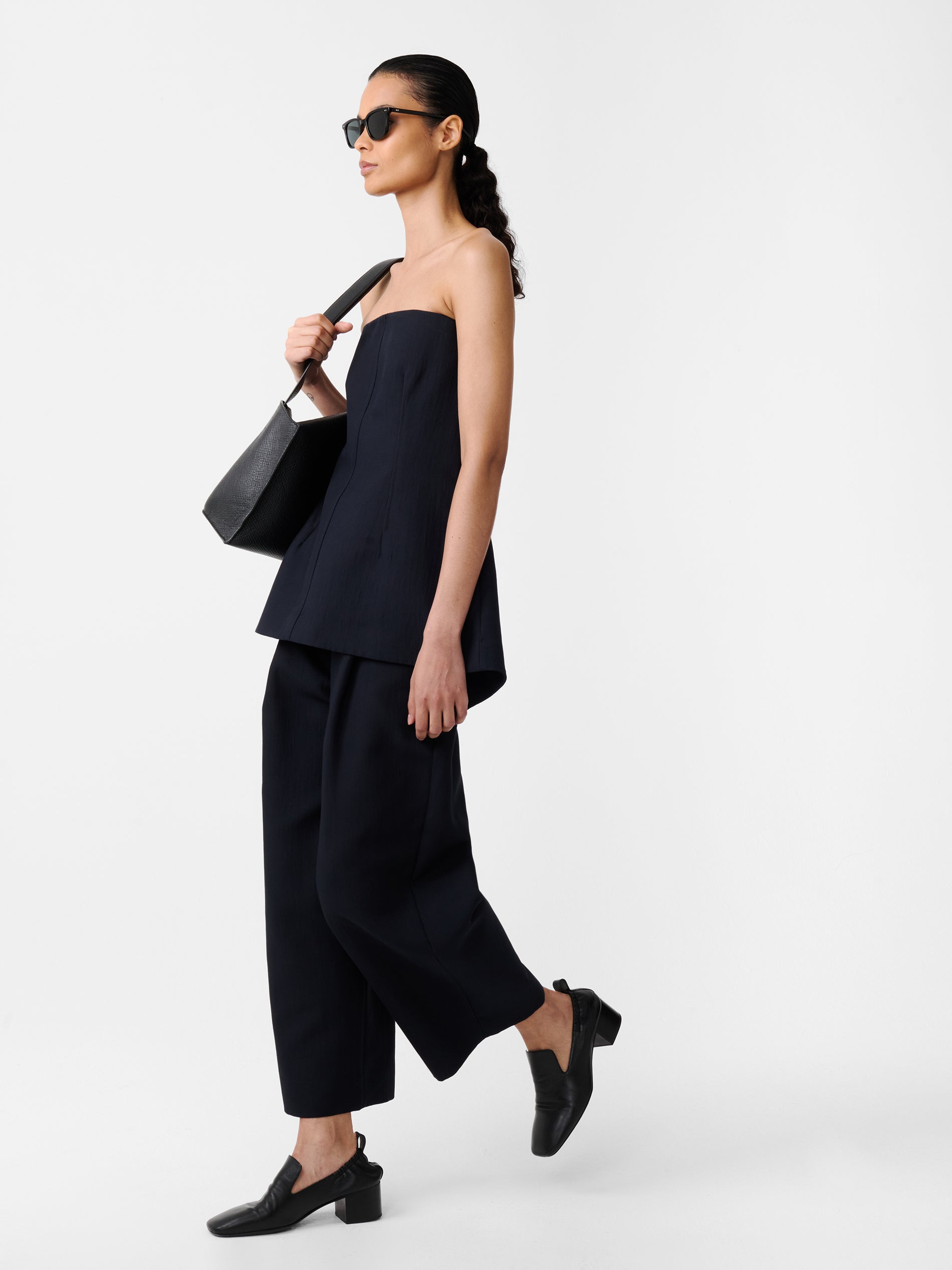 Studio Nicholson leans into traditional corsetry to create the Arles strapless top. Cut from our tumbled double cotton fabric to give a rounded hand feel, it has an internal corset with boning that accentuates the fabric choice and amplifies the sculptural silhouette.