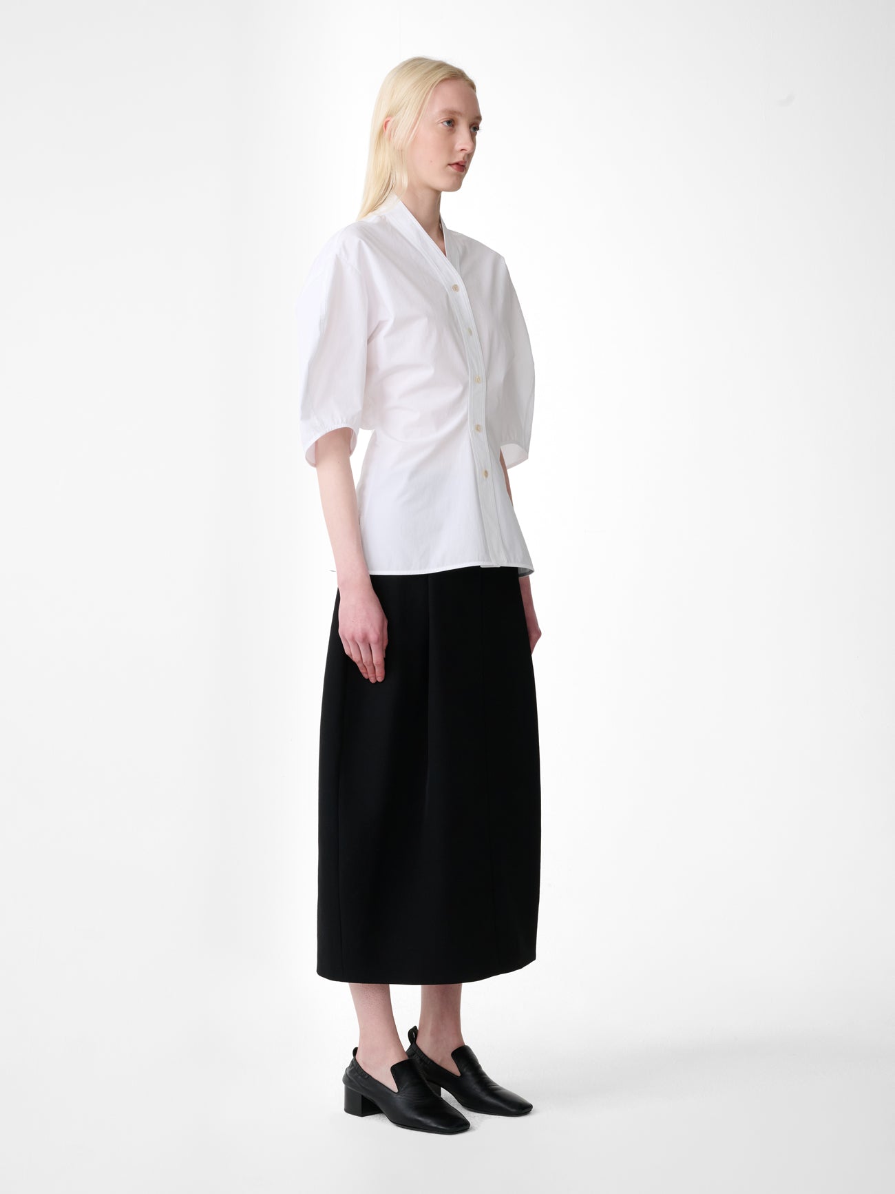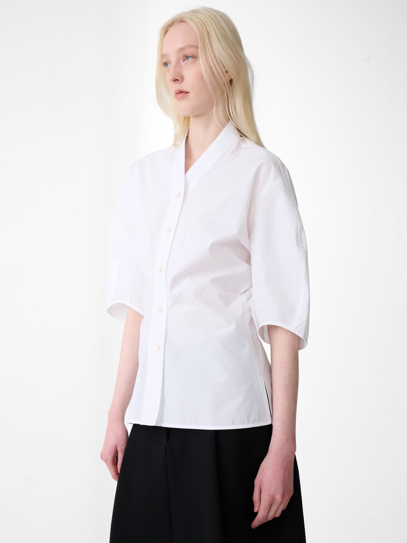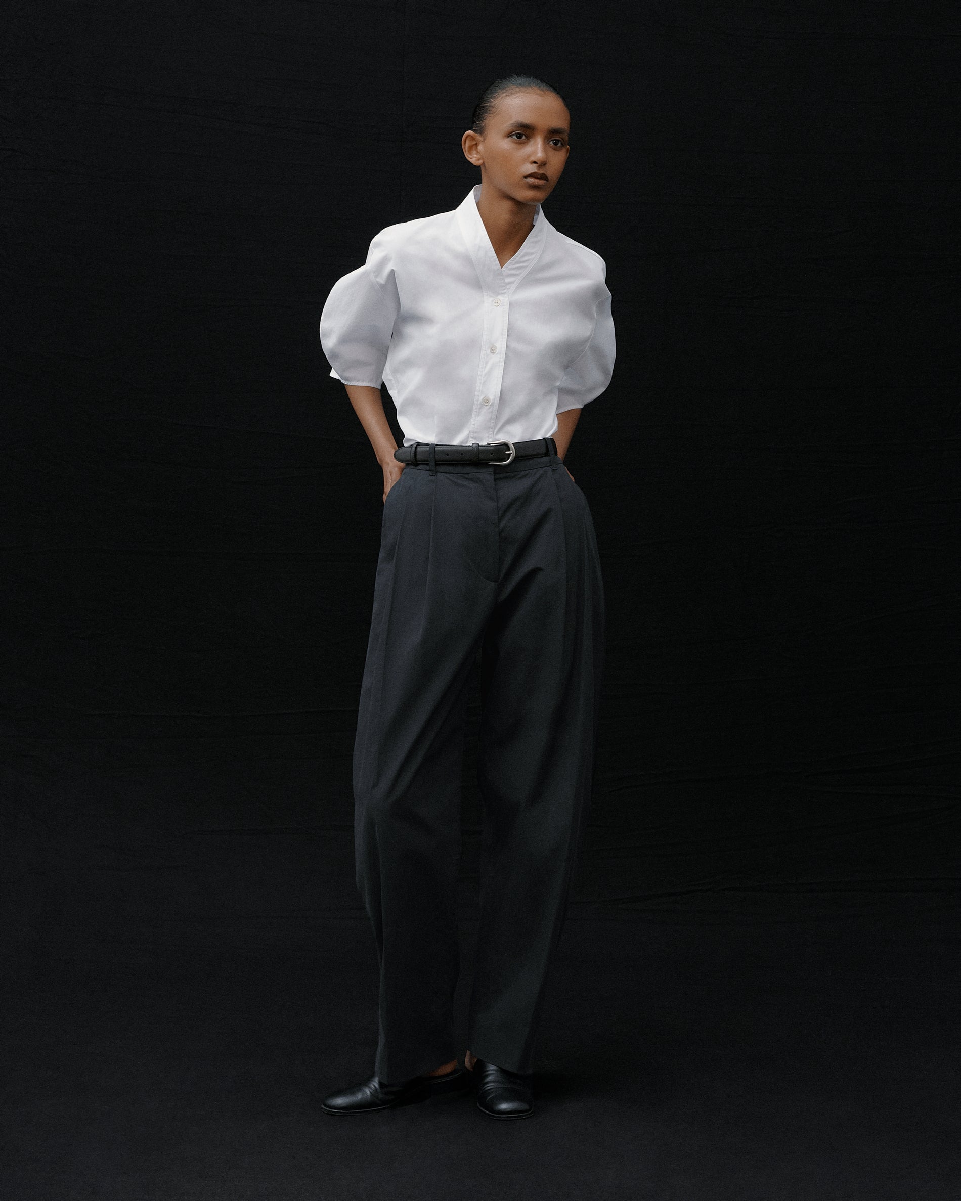 Asti is modern interpretation of a classic workwear style. It’s cut from our powder cotton: an Italian-woven fabric selected for its tactility and satisfyingly crisp hand feel. Shaped with a V-neckline and a neat row of buttons, Asti is fitted at the waist – a move accentuated by the dart in the back.