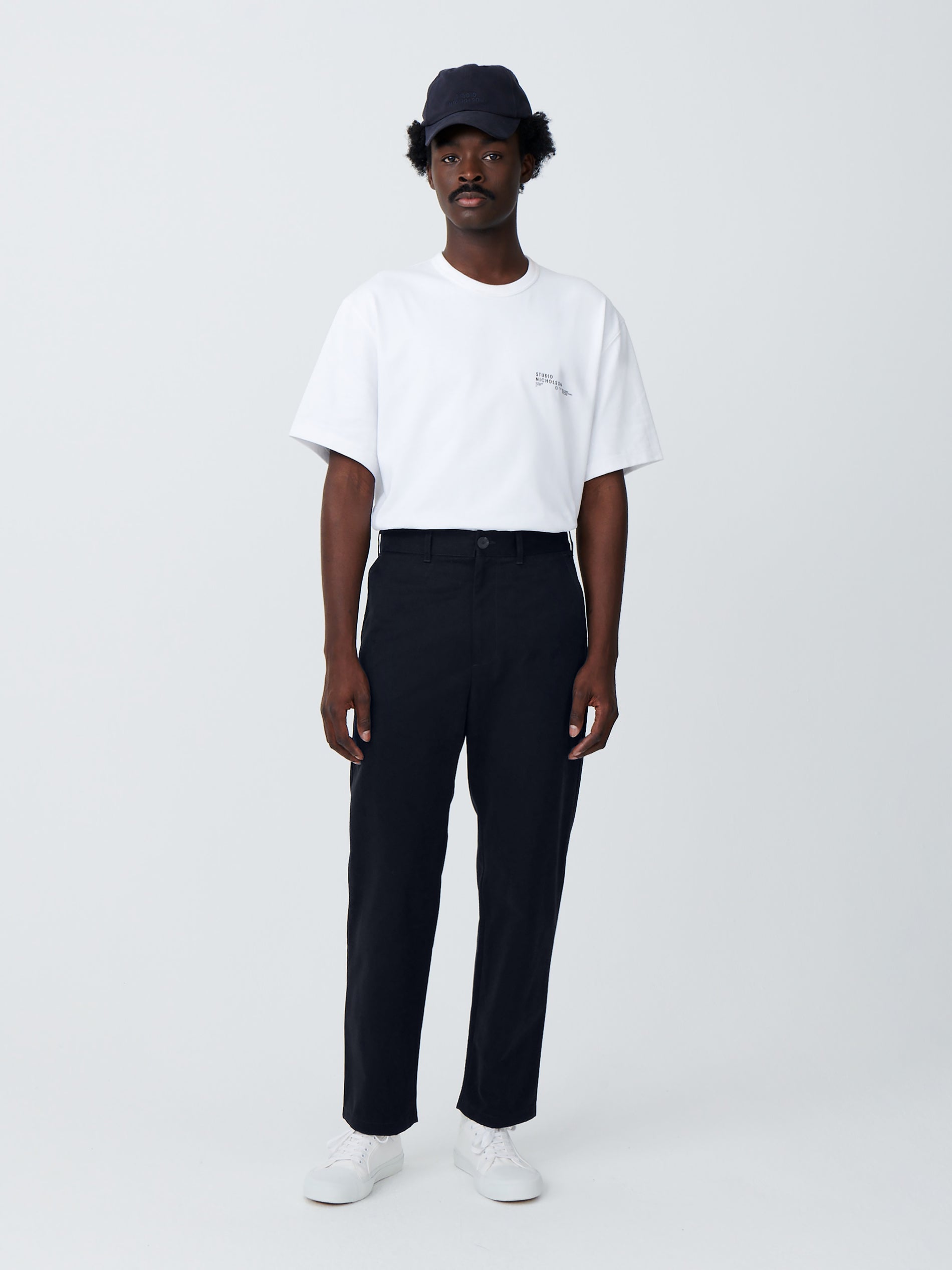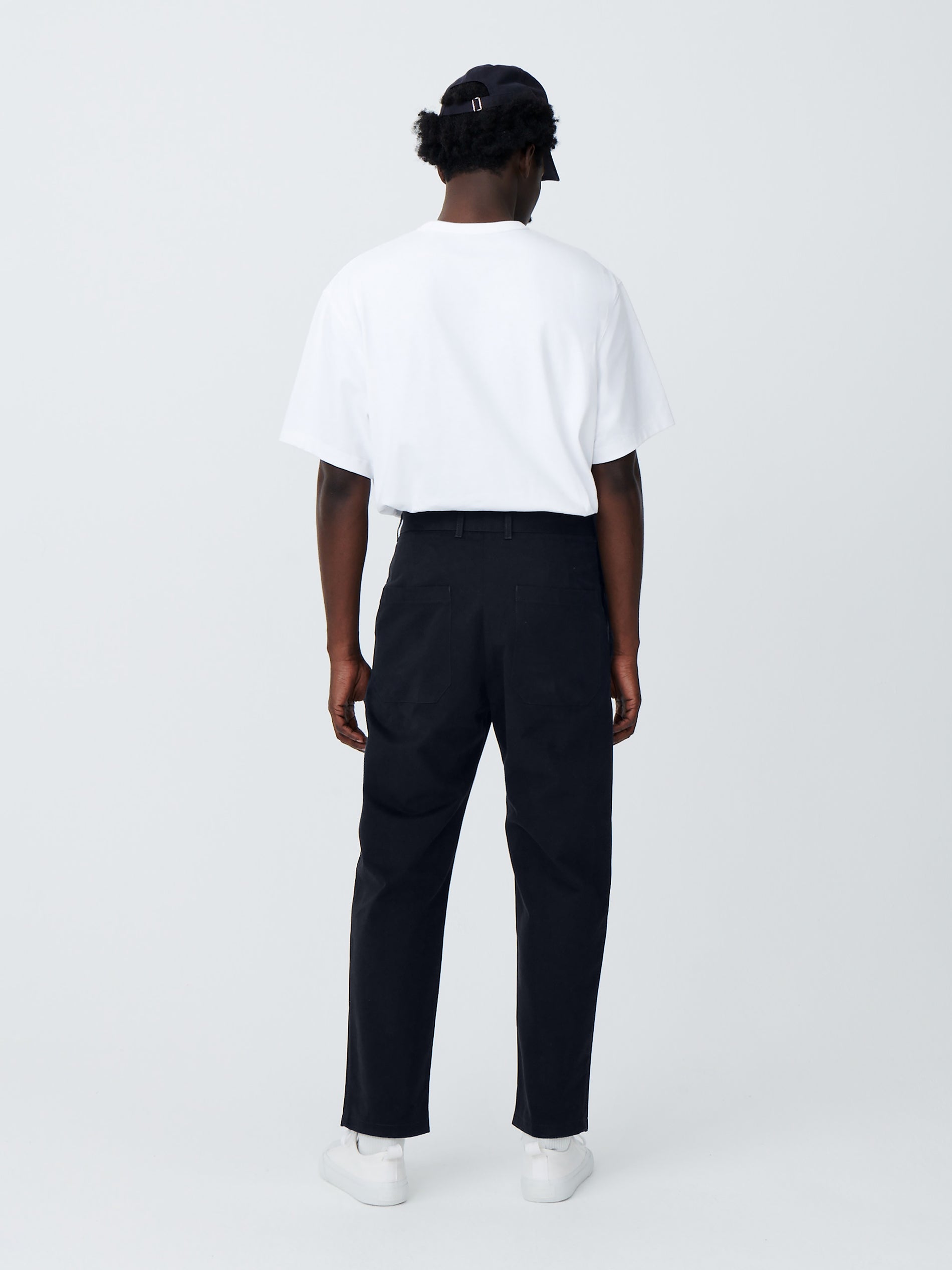 Studio Nicholson’s workwear influences are underscored by the Bill pants. They’re expertly cut from our signature Italian peached cotton: a dense cotton twill that’s expertly brushed for a peached finish and selected for its hefty hand feel. Bill is constructed with a high waist and a straight-leg profile, then fitted a pair of generous rear patch pockets that nod to classic utilitarian staples.