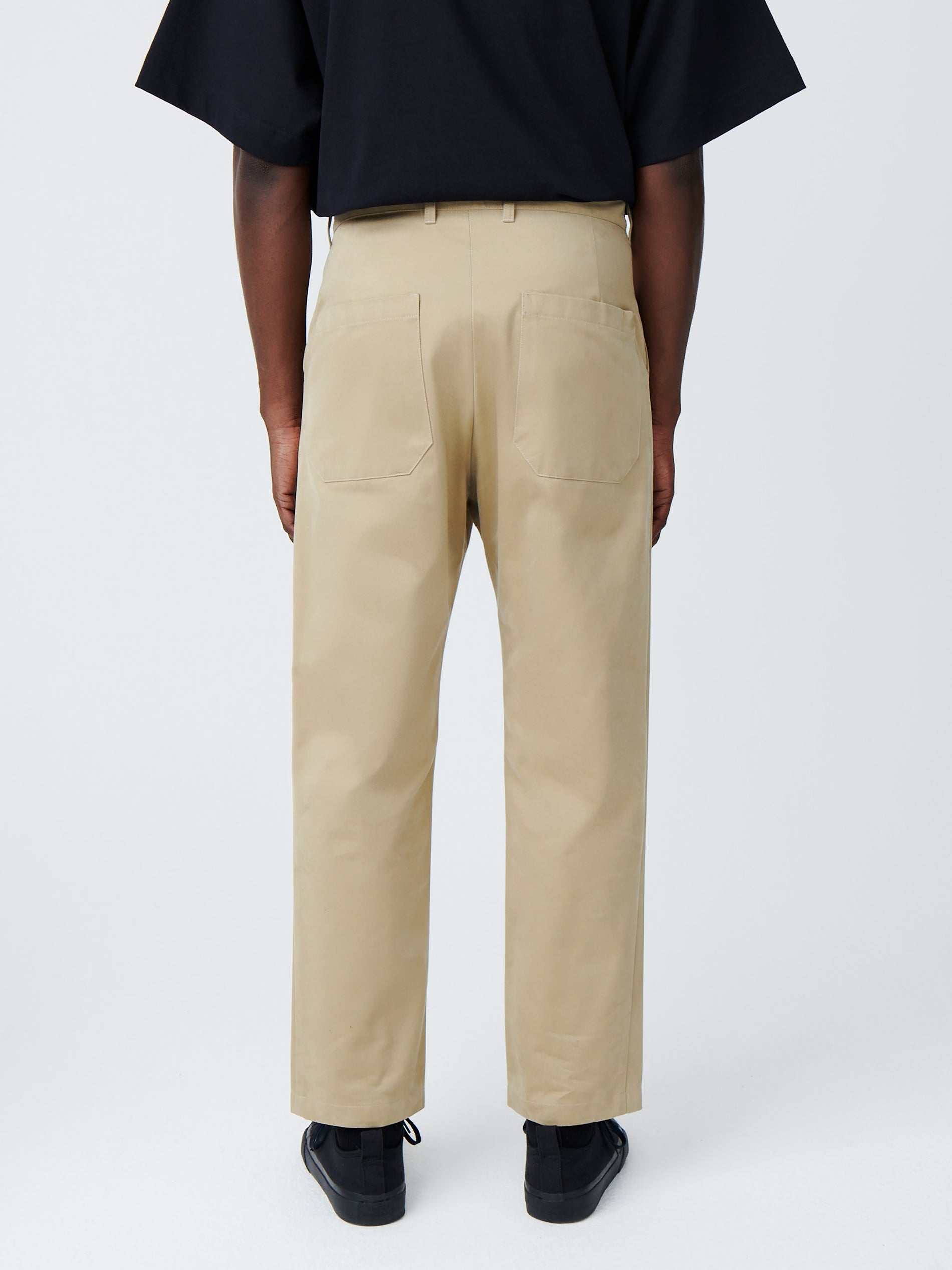 Studio Nicholson’s workwear influences are underscored by the Bill pants. They’re expertly cut from our signature Italian peached cotton: a dense cotton twill that’s expertly brushed for a peached finish and selected for its hefty hand feel. Bill is constructed with a high waist and a straight-leg profile, then fitted a pair of generous rear patch pockets that nod to classic utilitarian staples.