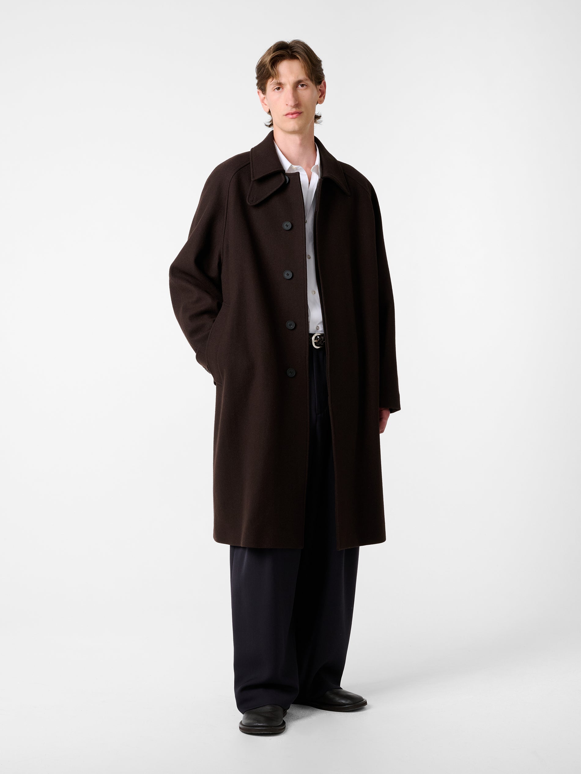 An easy-to-style outerwear staple, Cabo is a modern interpretation of traditional tailored overcoats. It’s crafted from our melton wool fabric – a dense, felted cloth with a brushed surface and a hard-wearing finish that lends itself to winter weather. It’s cut to a straight silhouette with raglan sleeves, a concealed placket and a back vent. Cabo has a buttoned throat latch for further protection from the elements.