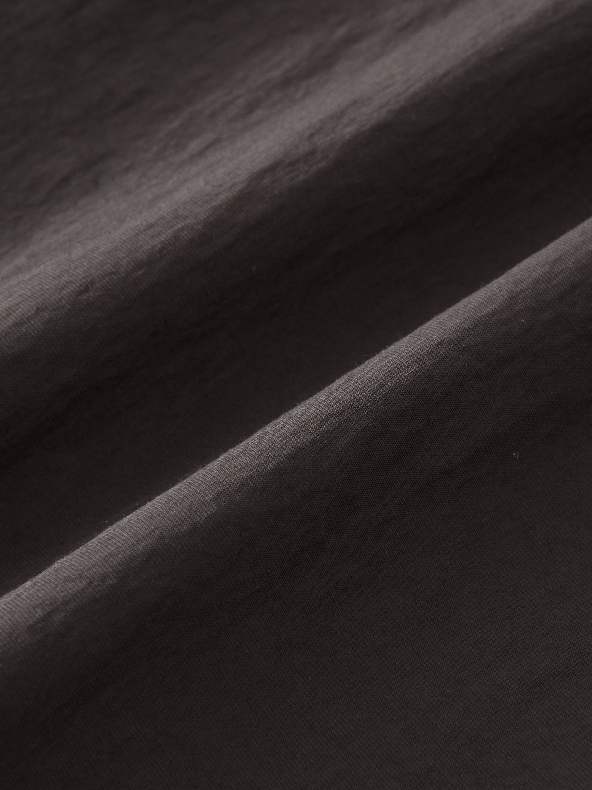 Studio Nicholson’s balance of form and function is captured in this Damus jacket. Inspired by classic sportswear silhouettes and is constructed with a rear storm shield, a two-way zip closure with a concealed placket and a drawcord hem. Damus is made from a densely woven technical nylon and cotton blend noted for its crisp handle and showerproof finish.