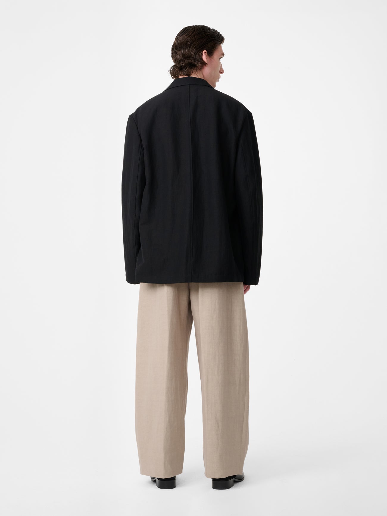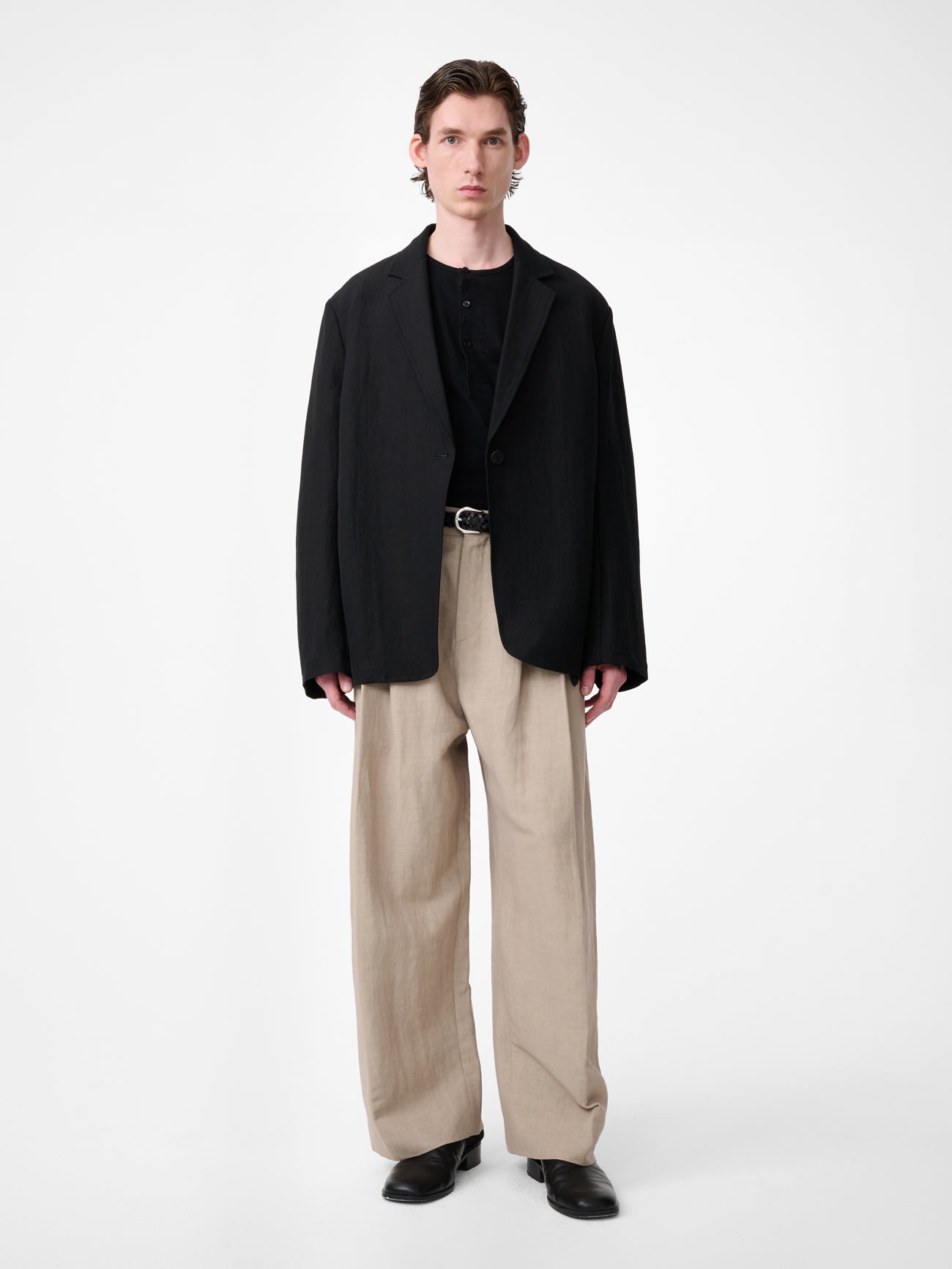 Studio Nicholson’s low-key tailoring underpins Denison. It’s expertly cut from panels of our antique wool linen: a premium, Italian-milled cloth that marries the airiness and breathability of linen with the structure and durability of wool. Denison is crafted with a crisp, single-button front that flatters the figure and leans into our preference for clean, uninterrupted lines.