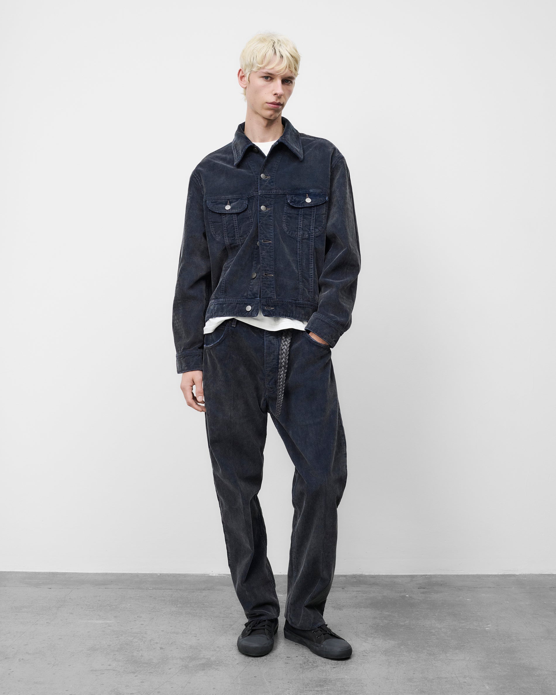 Part of Studio Nicholson’s collaboration with Aaron Levine, Derby is cut from Italian-milled corduroy that’s garment-dyed to create a softer, lived-in feel and captures SN’s ‘fabric first’ philosophy. The jacket deviates from the signature slim cut of classic trucker styles with a relaxed, boxy shape that gives a distinctly modern feel. Derby is finished with a smart spread collar, contrast top-stitching and adjustable waist tabs.