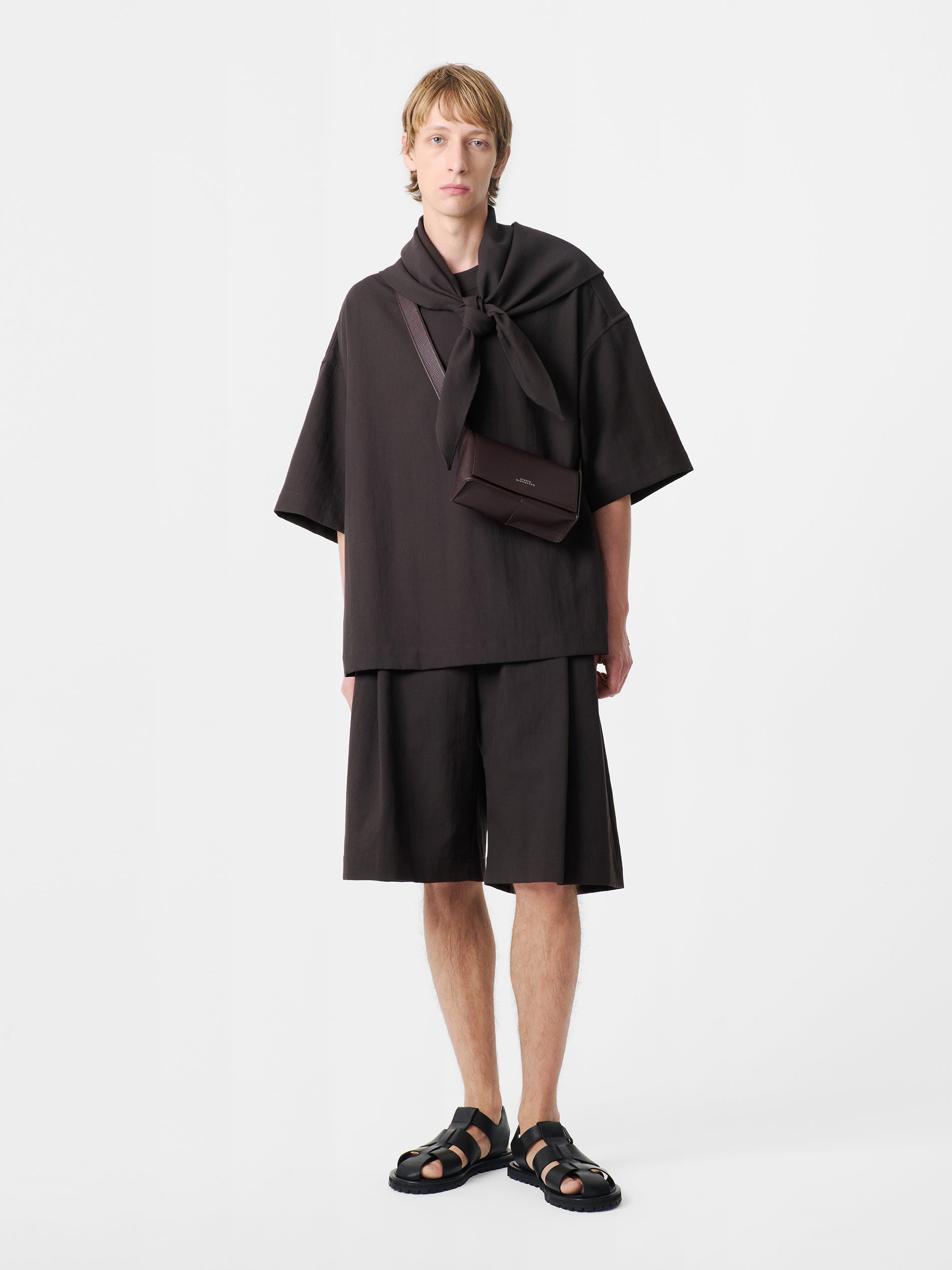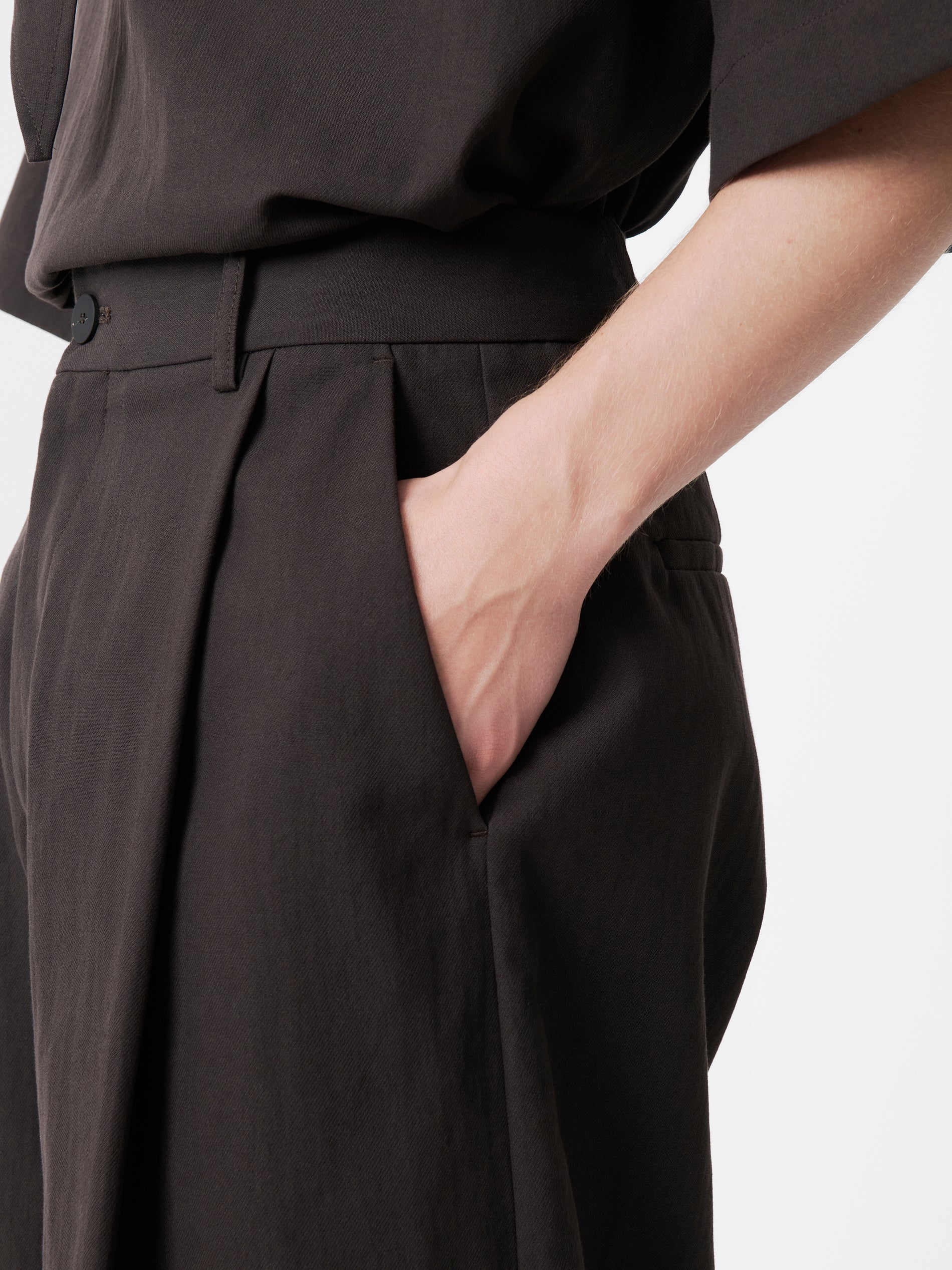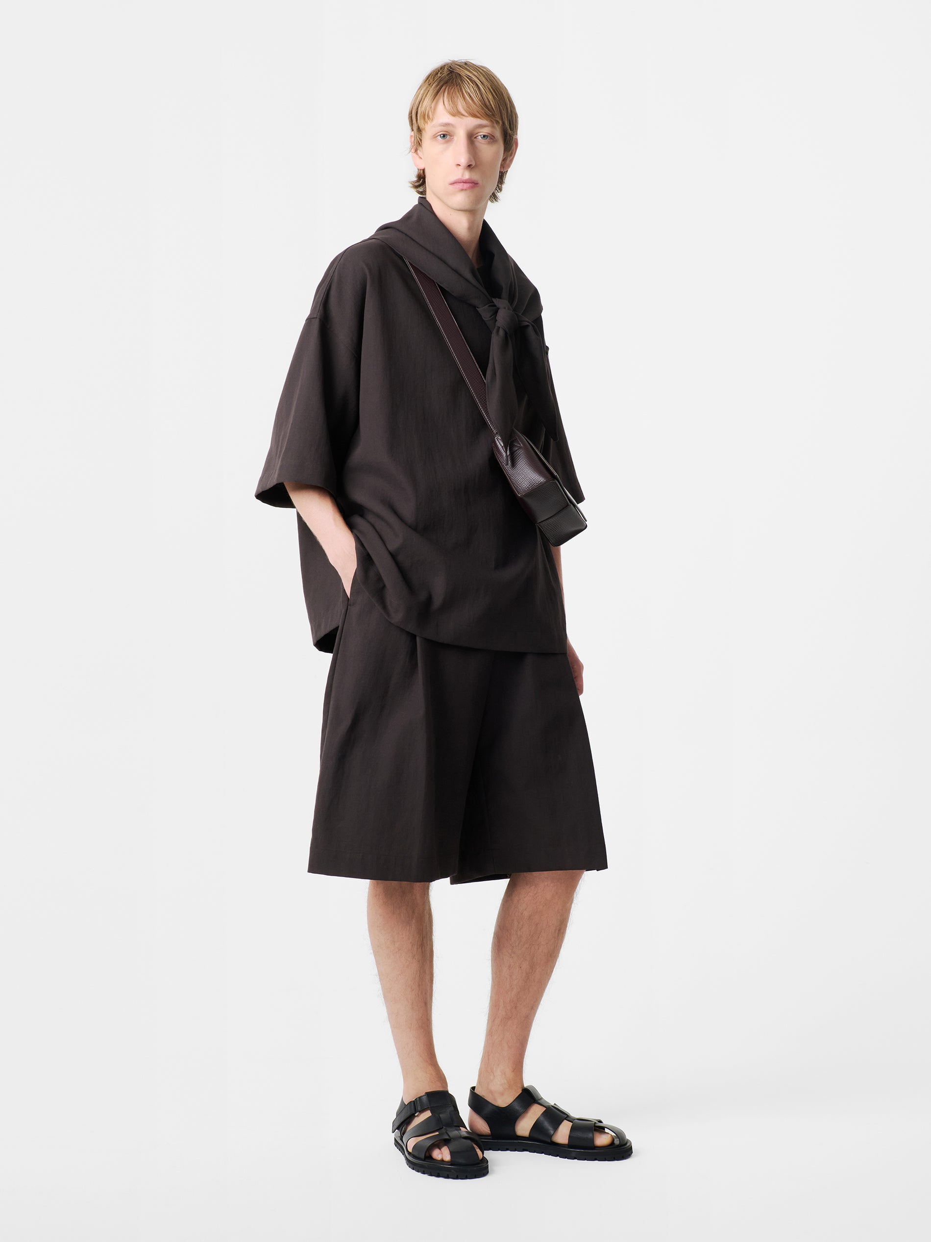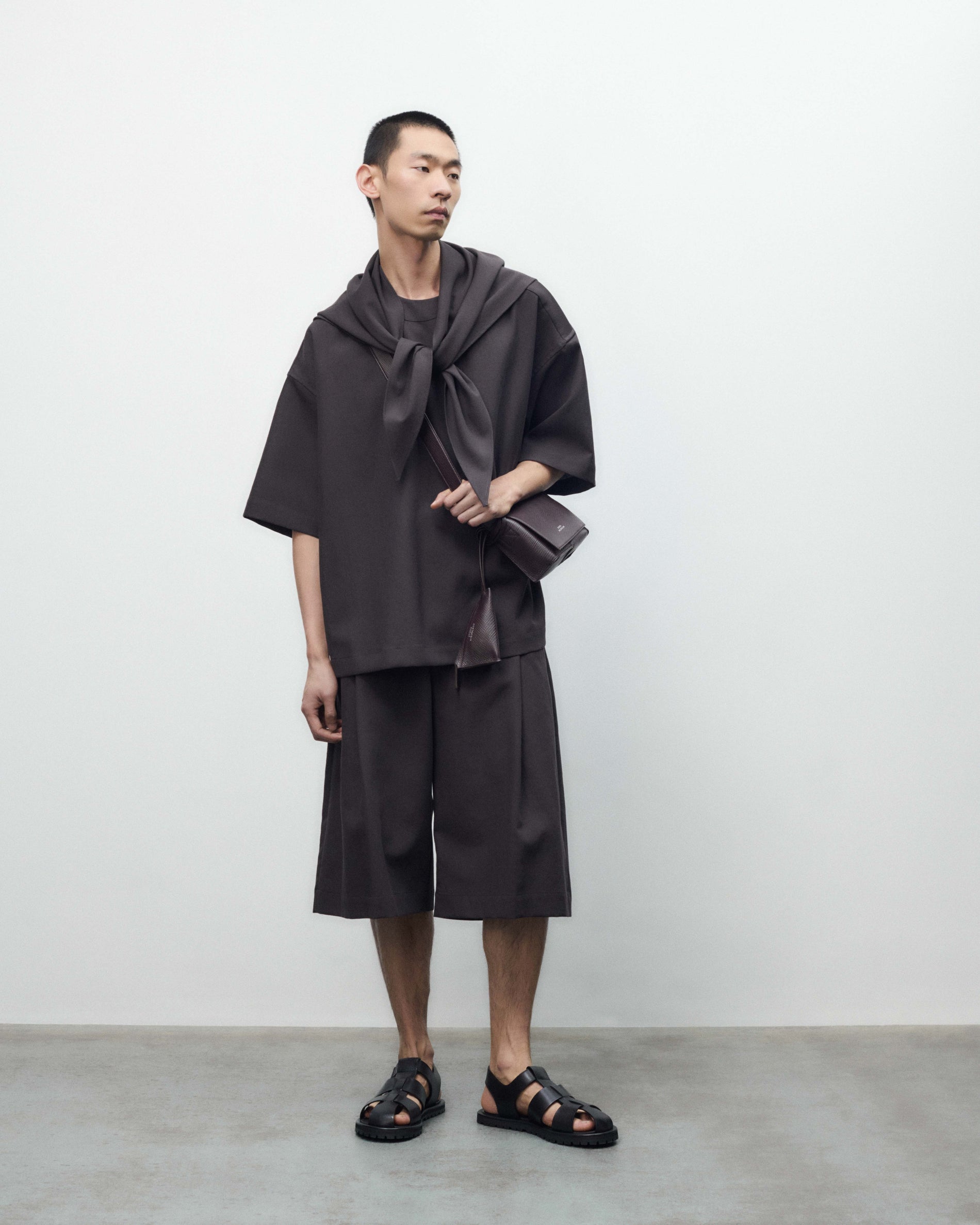 The Fowld shorts are tailored from an Italian high twist cotton that’s noted for its open weave, making them a breathable choice for transeasonal and warm-weather wear. They are cut to an oversized fit that’s enhanced by the reverse front pleats and are designed to finish just below the knee for a more relaxed look.