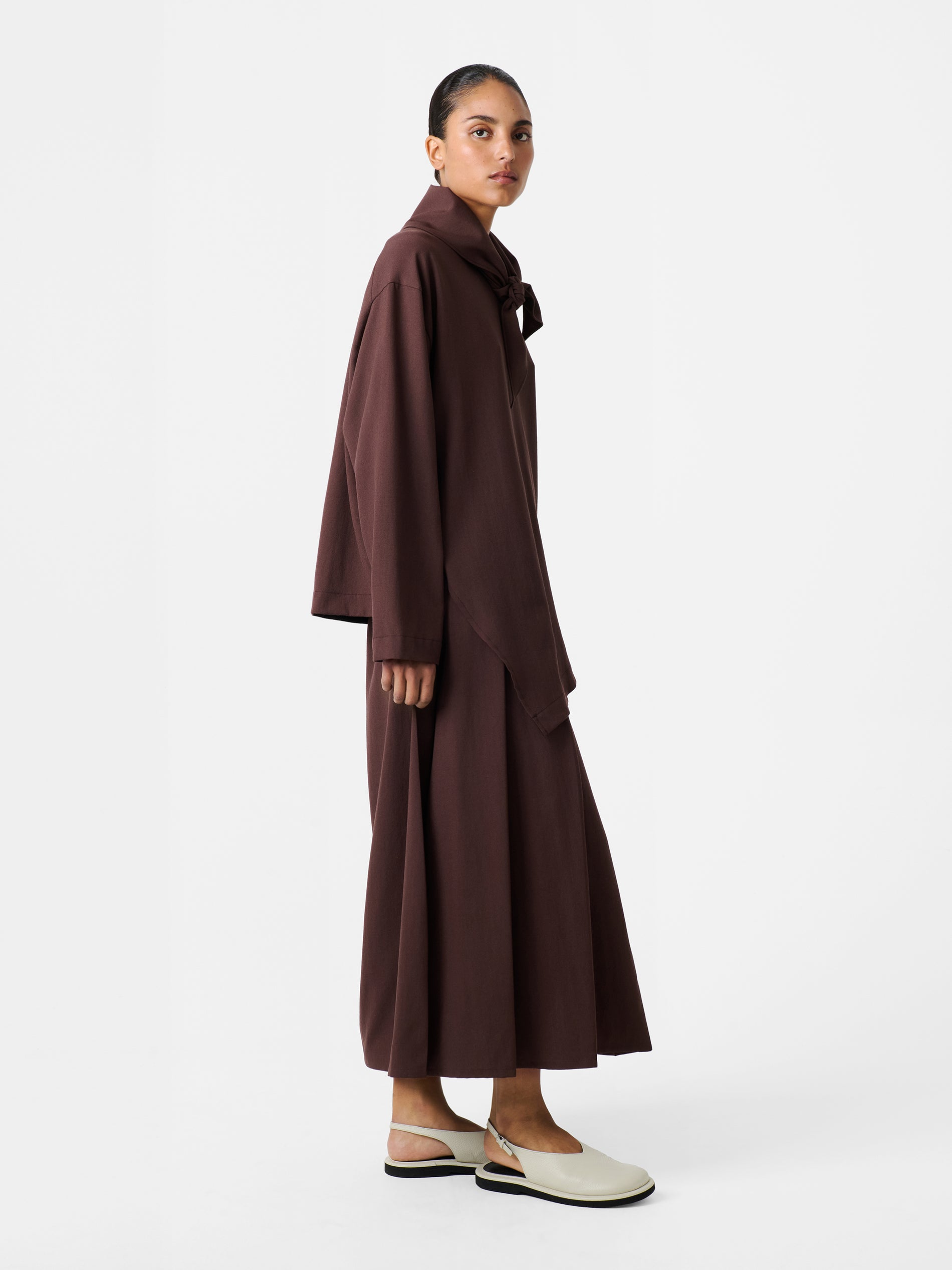This Fuse skirt is crafted from a lightweight woven wool that nods to traditional tailoring fabrications. Cut to sit mid-waist, it has a pleated front with an off-centre slit which lends an effortless drape to the asymmetric silhouette.