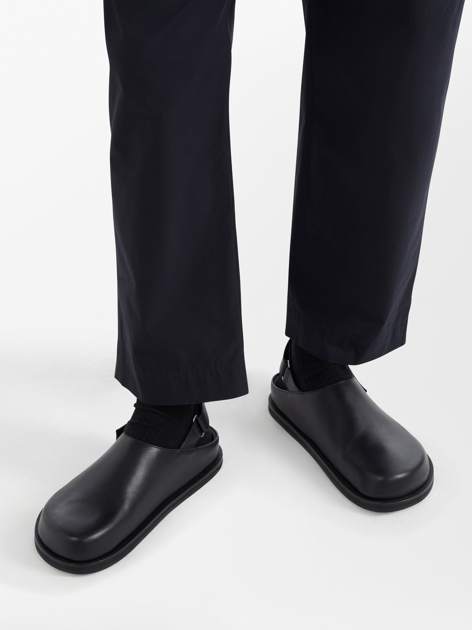 Hardning uses the traditional rounded shape of classic workwear clogs, while quietly refining key details, like an adjustable backstrap and a neat leather welt. The upper is made from a beautiful full grain tumbled leather.
