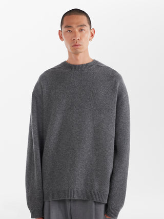 Nodding to traditional knitwear with its English lambswool construction and Guernsey detailing at the neck, Hemyl is a classic staple made modern. It has an oversized fit that’s wide at the chest, tapering gently towards the hem.