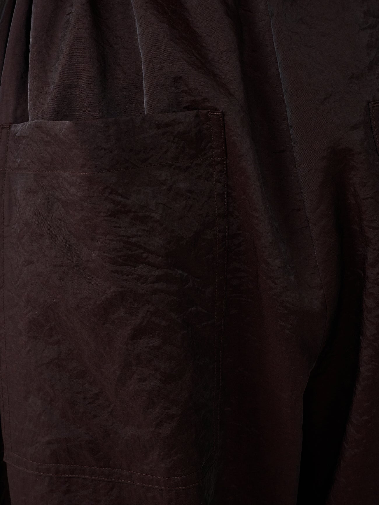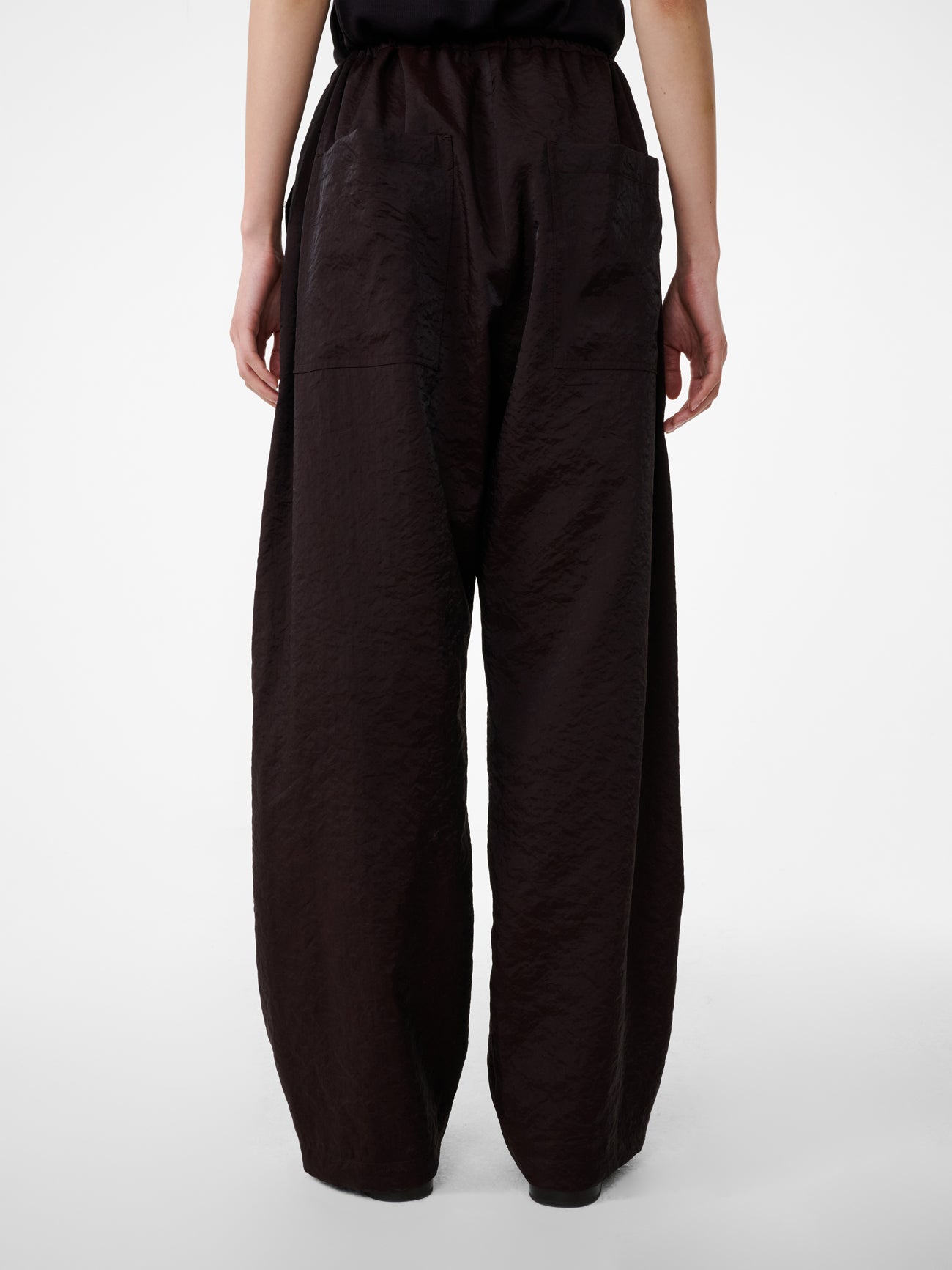 Hera is a clean, uncomplicated take on a transeasonal wardrobe staple: the draw cord trousers. They’re cut from our double-faced wool-nylon blend noted for its high shine, crinkled texture, and unassuming fluidity. Hera is constructed with an exposed four-button placket that recalls heritage tailoring codes.