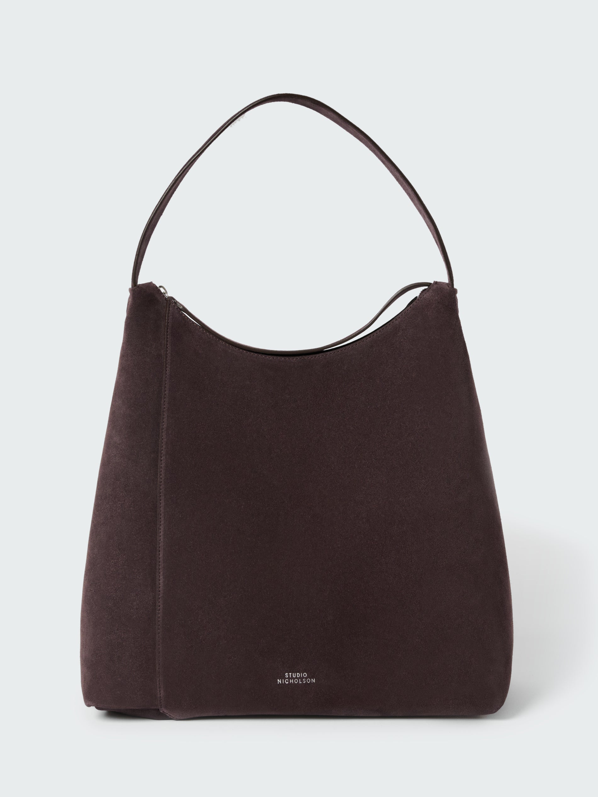 Crafted in Italy from suede leather, the Hobo Type 1 bag reflects the relaxed elegance of our ready-to-wear staples. Seeking less traditional approaches to construction, we’ve experimented with seam placement, resulting in a soft, squashy structure that still feels considered and smart. The curved zipped top has a satisfying attached pull strap, while the top handle is box stitched for security.