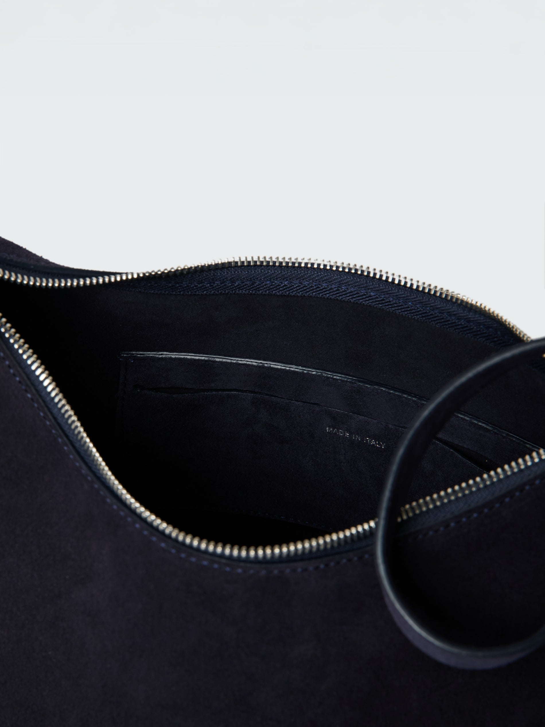 Crafted in Italy from suede leather, the Hobo Type 1 bag reflects the relaxed elegance of our ready-to-wear staples. Seeking less traditional approaches to construction, we’ve experimented with seam placement, resulting in a soft, squashy structure that still feels considered and smart. The curved zipped top has a satisfying attached pull strap, while the top handle is box stitched for security.