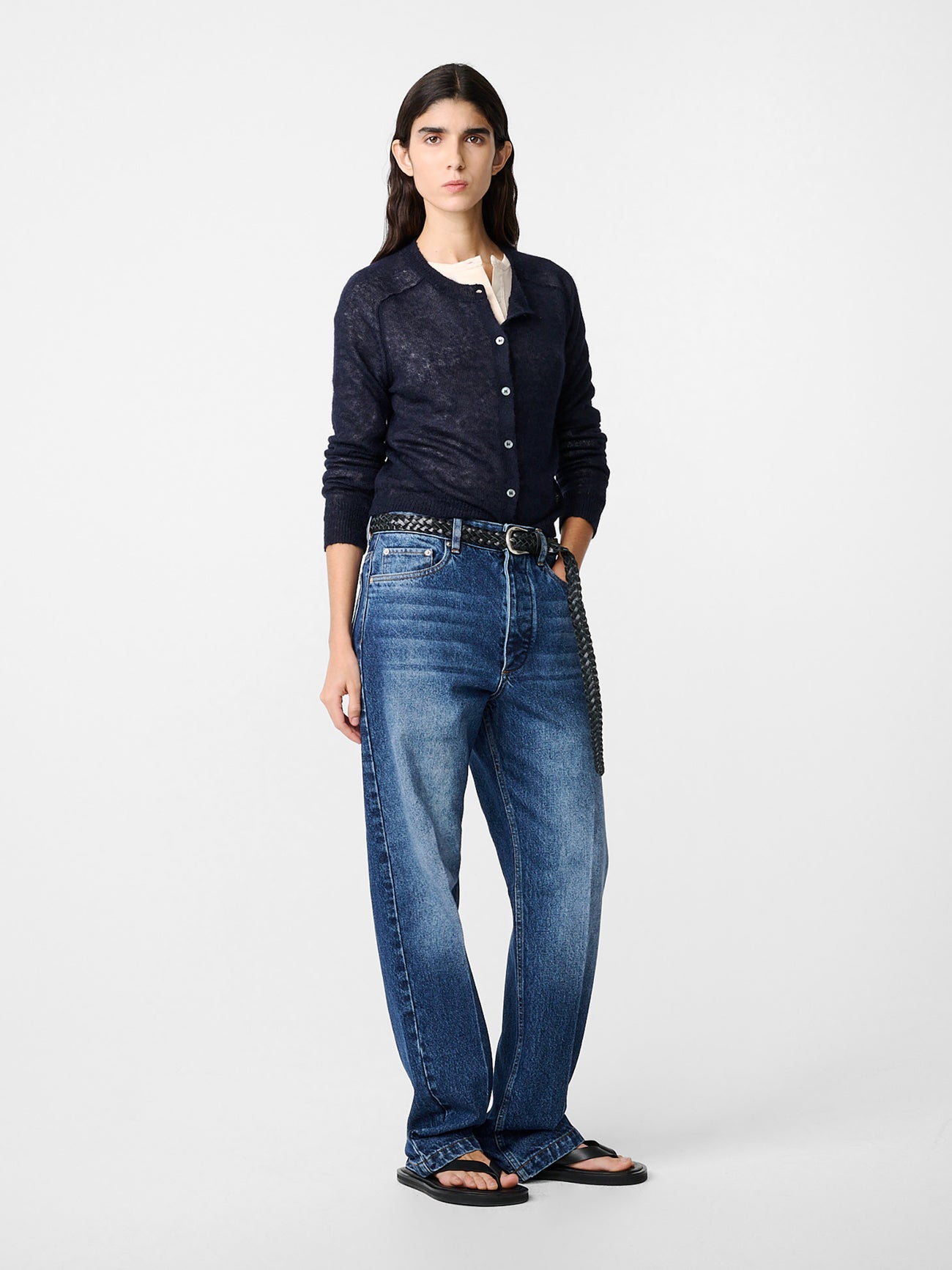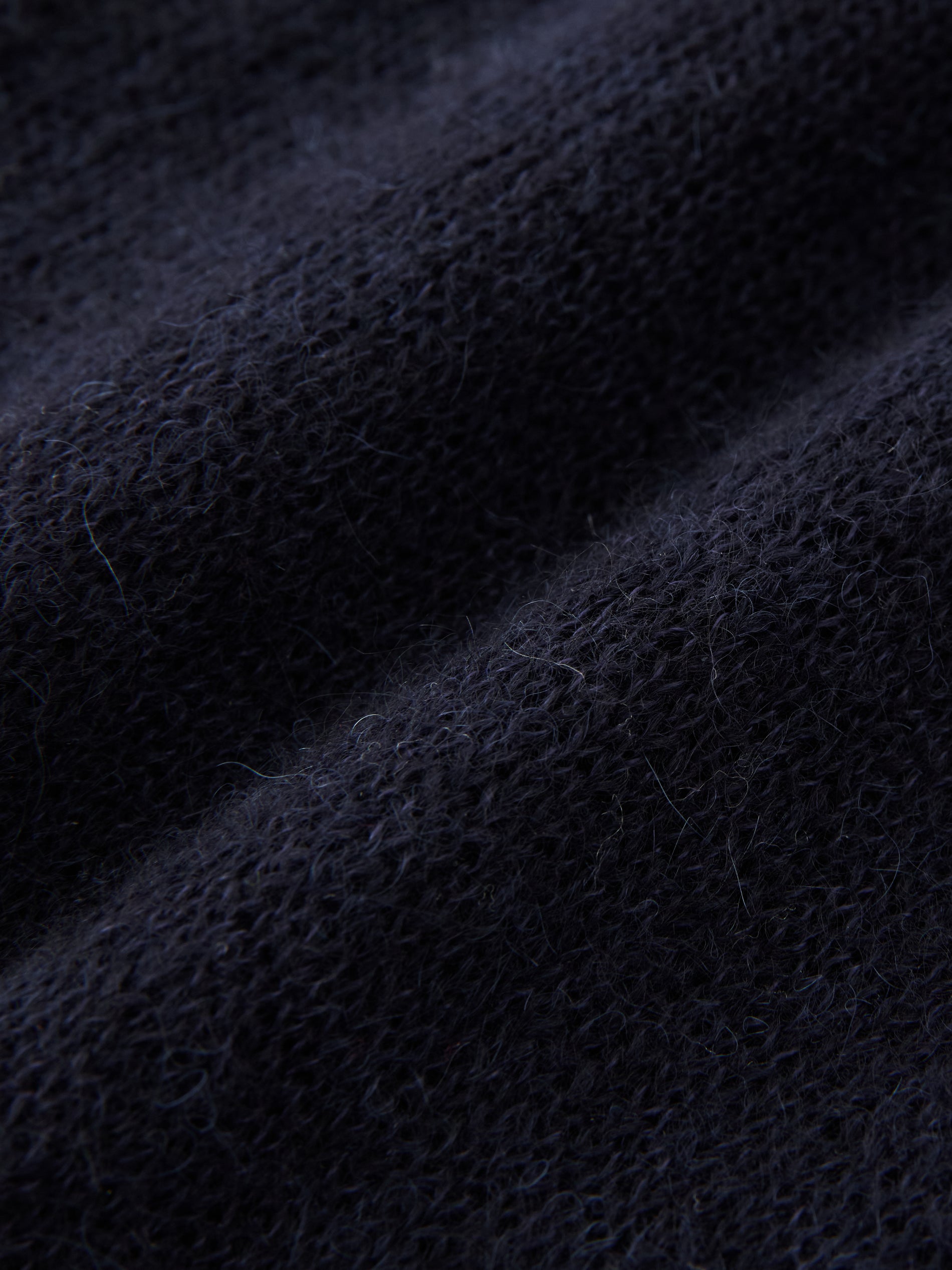 Studio Nicholson’s commitment to impeccable yarn choices. It’s exquisitely crafted from our mohair yarn– an Italian-milled, kid mohair blended with alpaca to create a lightweight, satisfyingly soft hand feel and hairy texture. Constructed with a crew neckline, button closure and ribbed trims, Iska is a streamlined take on the classic cardigan and lends itself to relaxed, low-key layering.