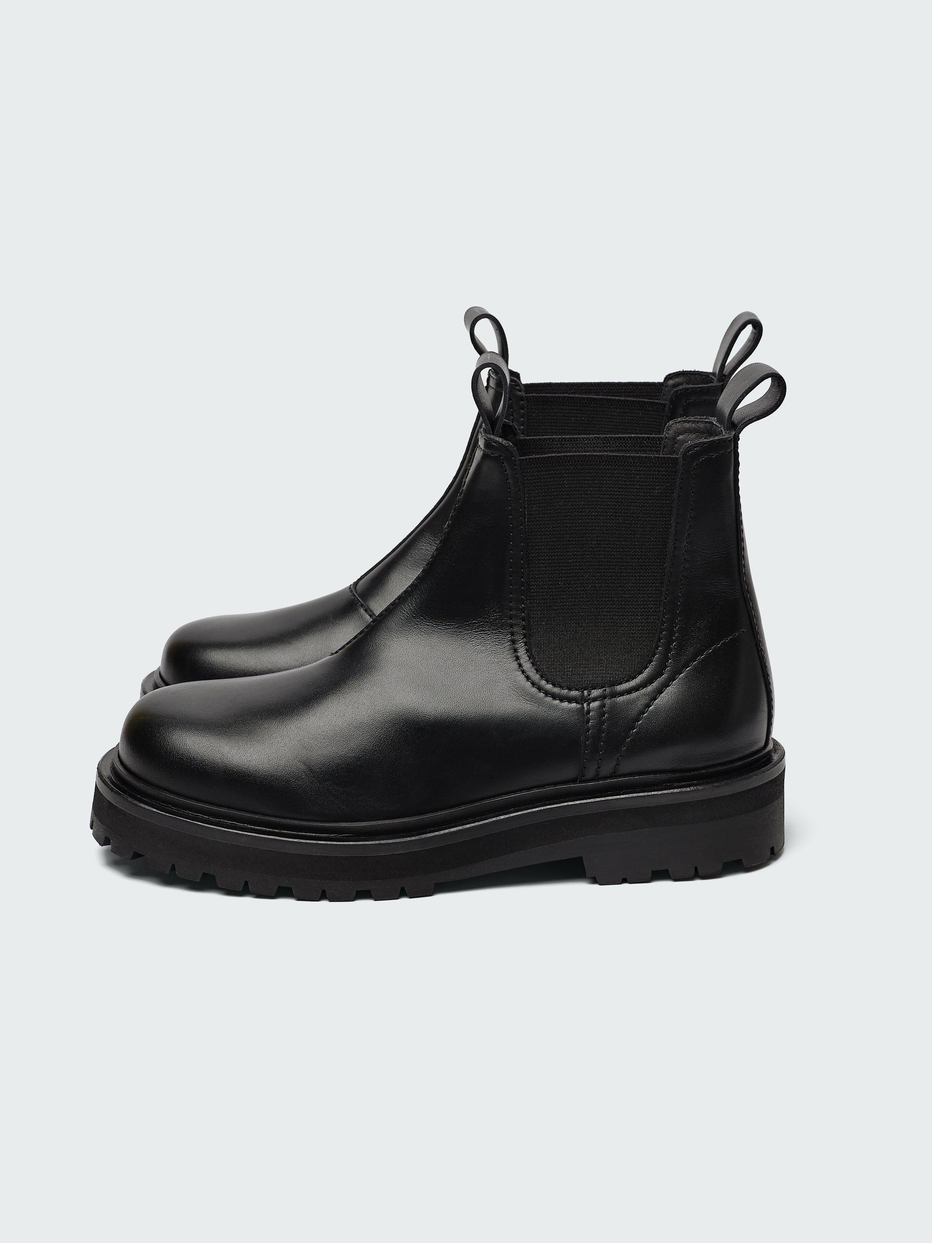 Kick blends industrial influences with nods to fine shoemaking. The upper is constructed from a highly refined Italian leather, which contrasts with the heavy duty twin-needle stitching and chunky Vibram lug sole.