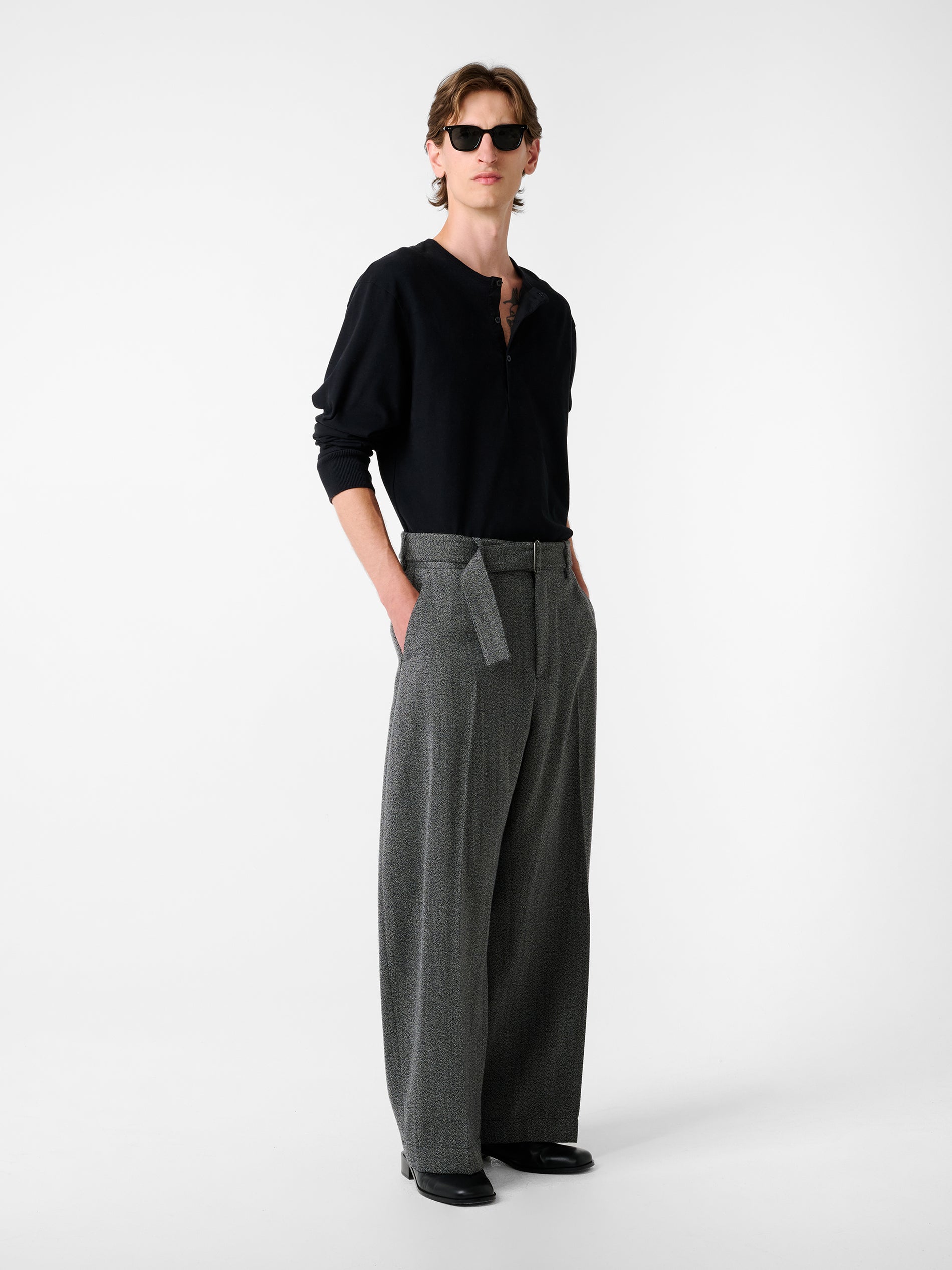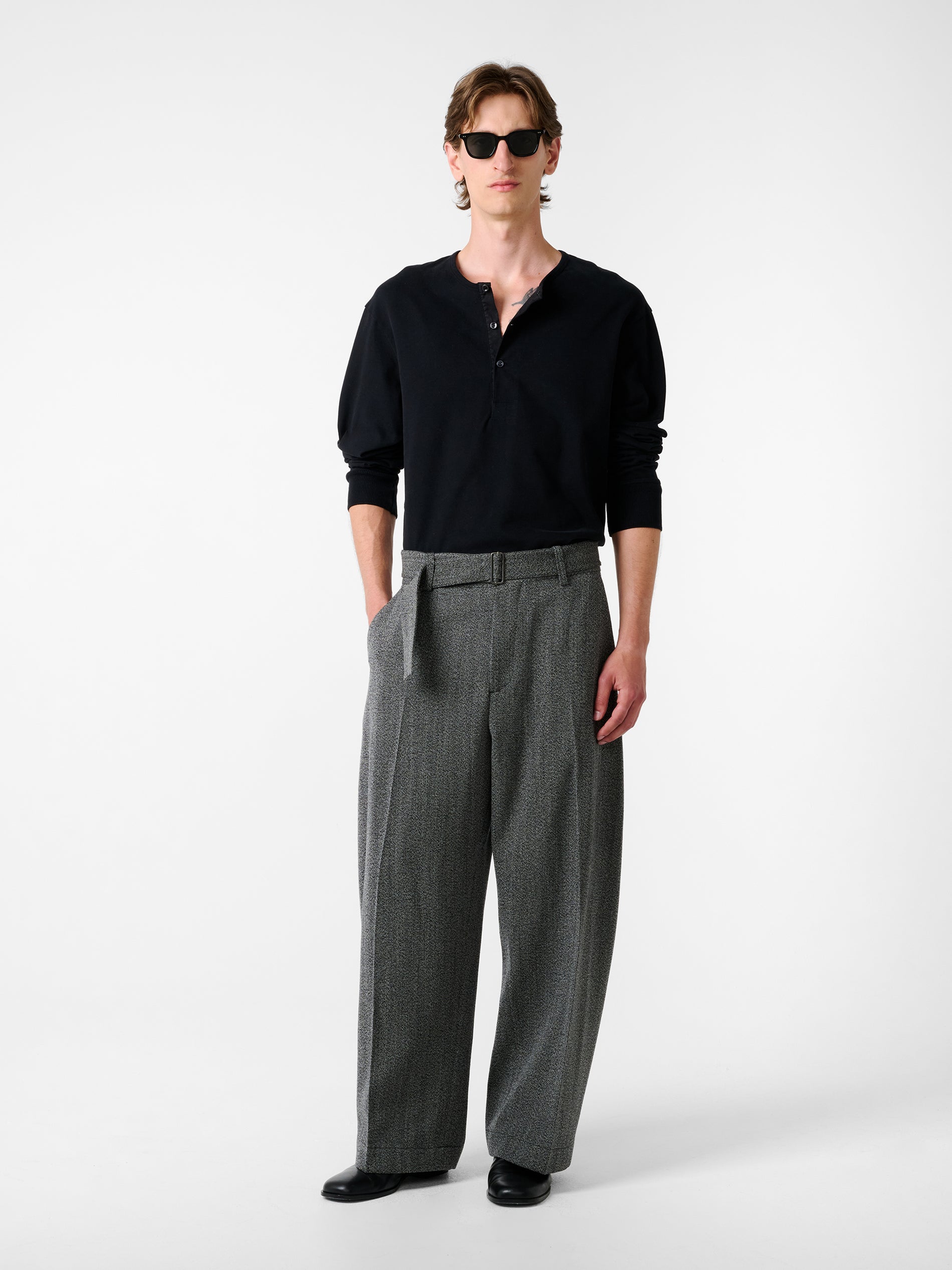 Unassuming wardrobe pillars are at the core of Studio Nicholson’s ethos and Kuyto is built for effortless seasonal layering. An updated take on the enduring Henley silhouette, Kuyto is cut from our soft touch jersey: a compact cotton jersey that’s expertly treated to create a rich, peach-like surface and a weighty hand feel.