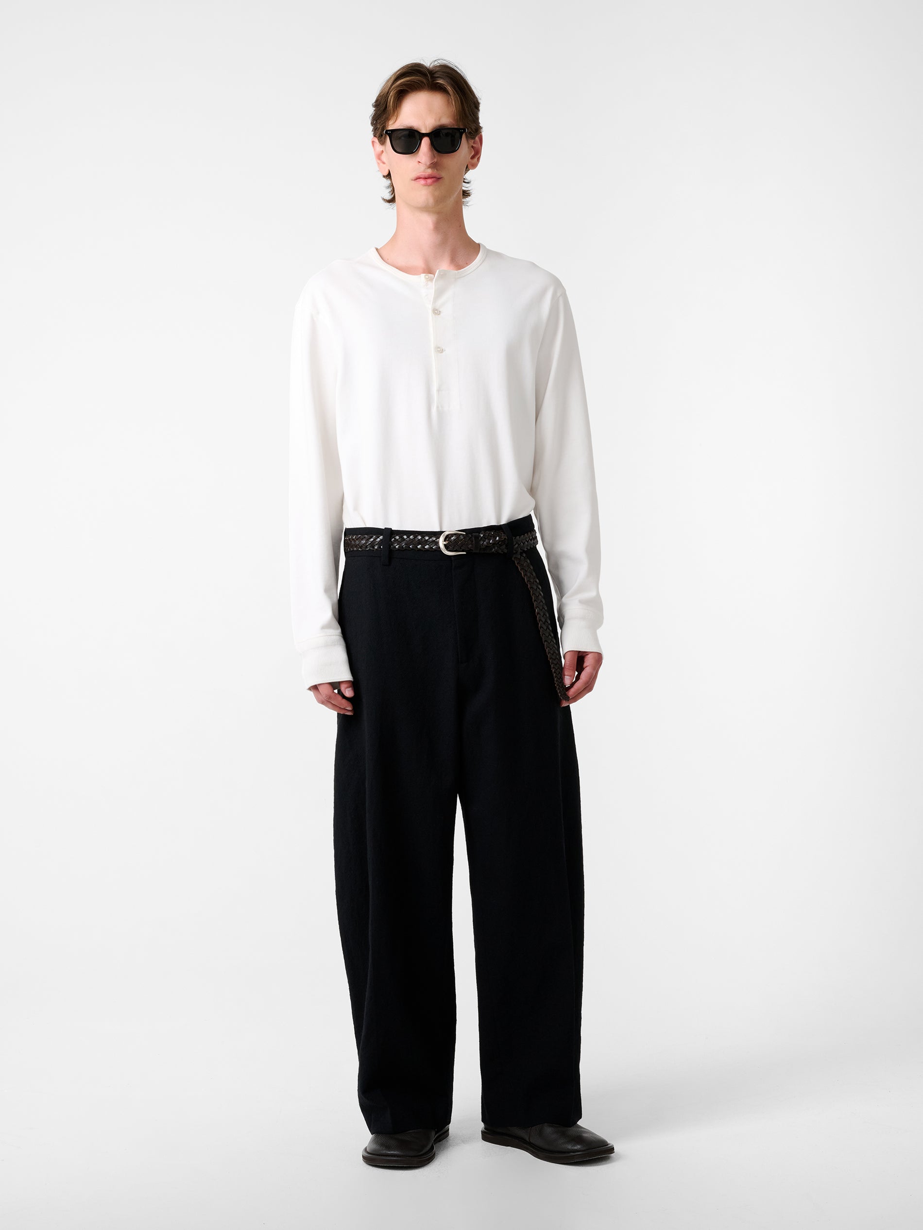 Unassuming wardrobe pillars are at the core of Studio Nicholson’s ethos and Kuyto is built for effortless seasonal layering. An updated take on the enduring Henley silhouette, Kuyto is cut from our soft touch jersey: a compact cotton jersey that’s expertly treated to create a rich, peach-like surface and a weighty hand feel.