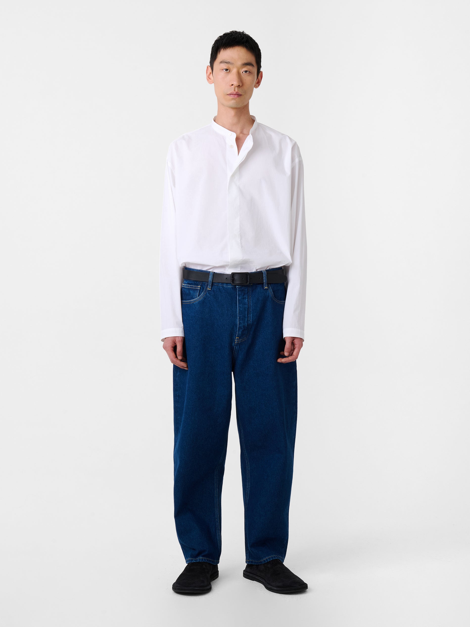 Combining a mid waist with a cropped, slightly volume leg, Land’s silhouette is a distinctive example of our unique design approach. We have constructed these jeans from a substantial denim made using regenerative cotton.