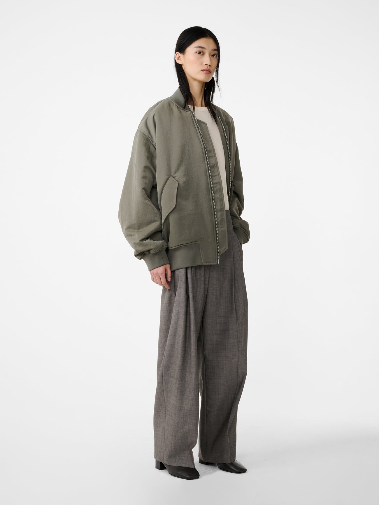 The Leroy jacket is an update on the classic varsity silhouette that dating back to the 1860s. It’s crafted from our crisp nylon fabric that’s defined its compact, lightly crinkled handle and showerproof finish. Leroy is constructed with an elasticated collar, cuffs and hem, and has a pair of generous flap pockets and a sleeve zip pocket that recall our longstanding workwear influences.