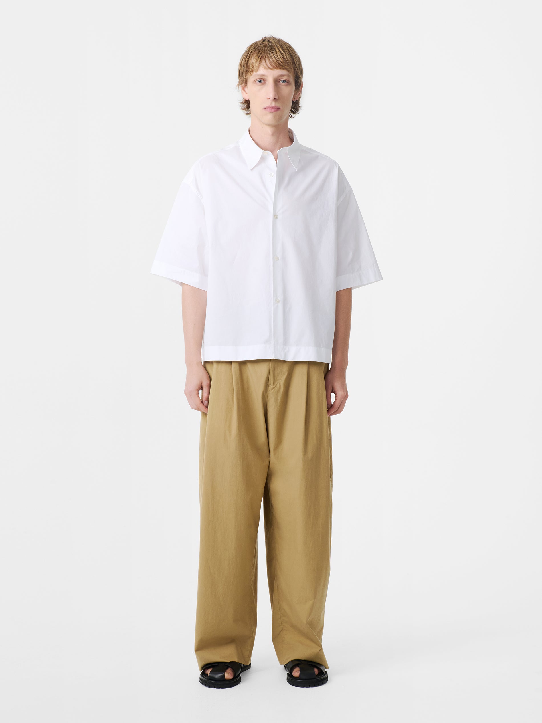 The Line pants are crafted from Japanese Typewriter cotton that gives a pleasingly soft, papery handle. Shaped with generous volume in the leg, they’re constructed with deep double reverse pleats and a clean, tailored finish – a seasonal reimagining of our perennial classic, the Yale Pant.