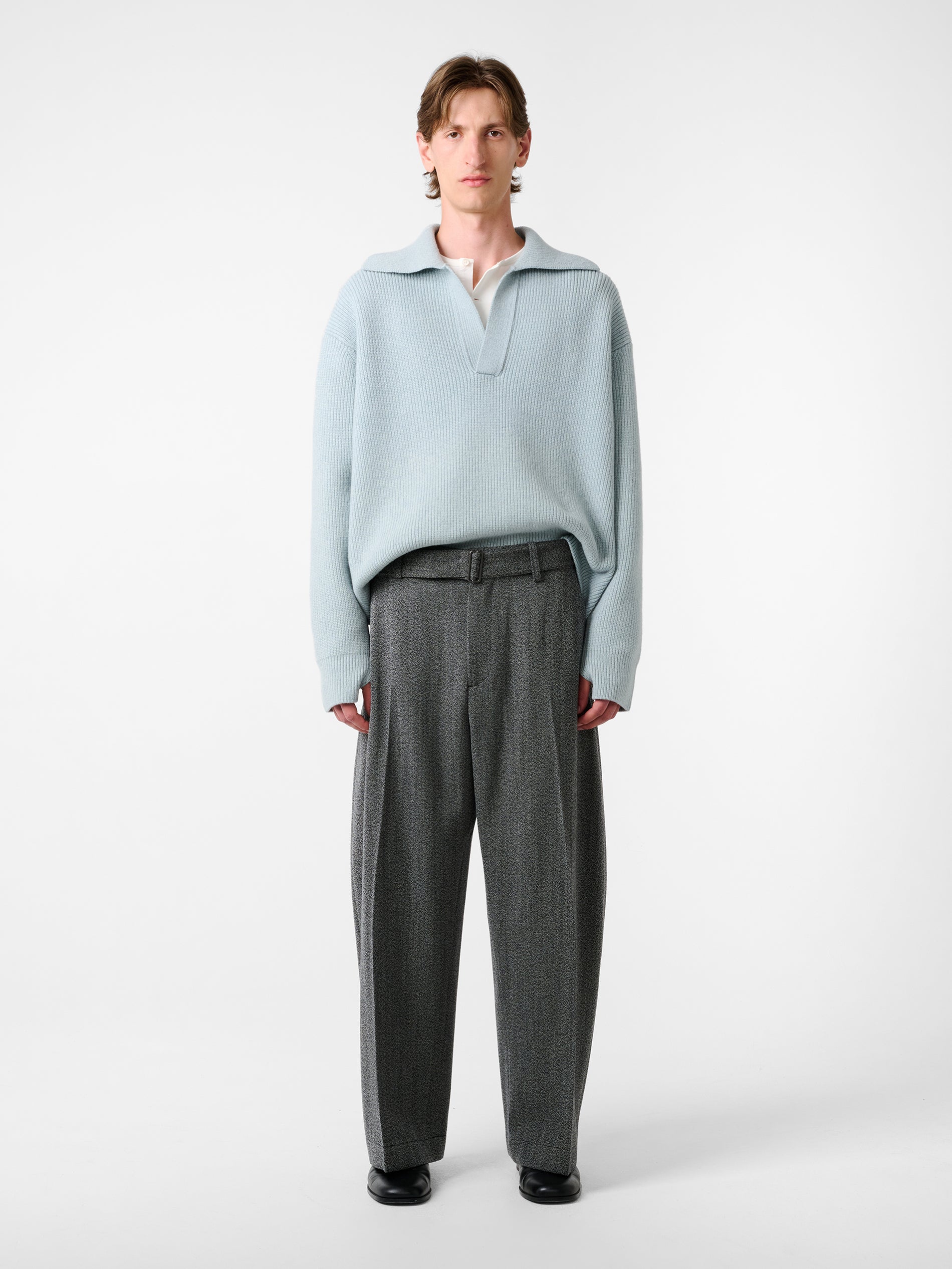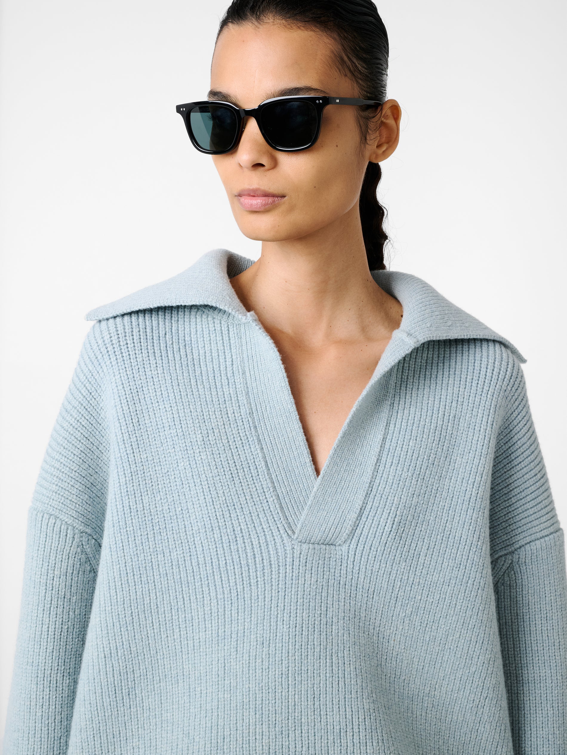 A key component of an Autumn Winter wardrobe, Nash draws inspiration from the timeless polo silhouette. Its knitted from RWS-standard extrafine merino wool that has a satisfyingly hefty hand feel and is constructed with an open polo collar and ribbed trims. Note how the dropped shoulders recall the relaxed, low-key knits that punctuate our Winter ’25 collection.