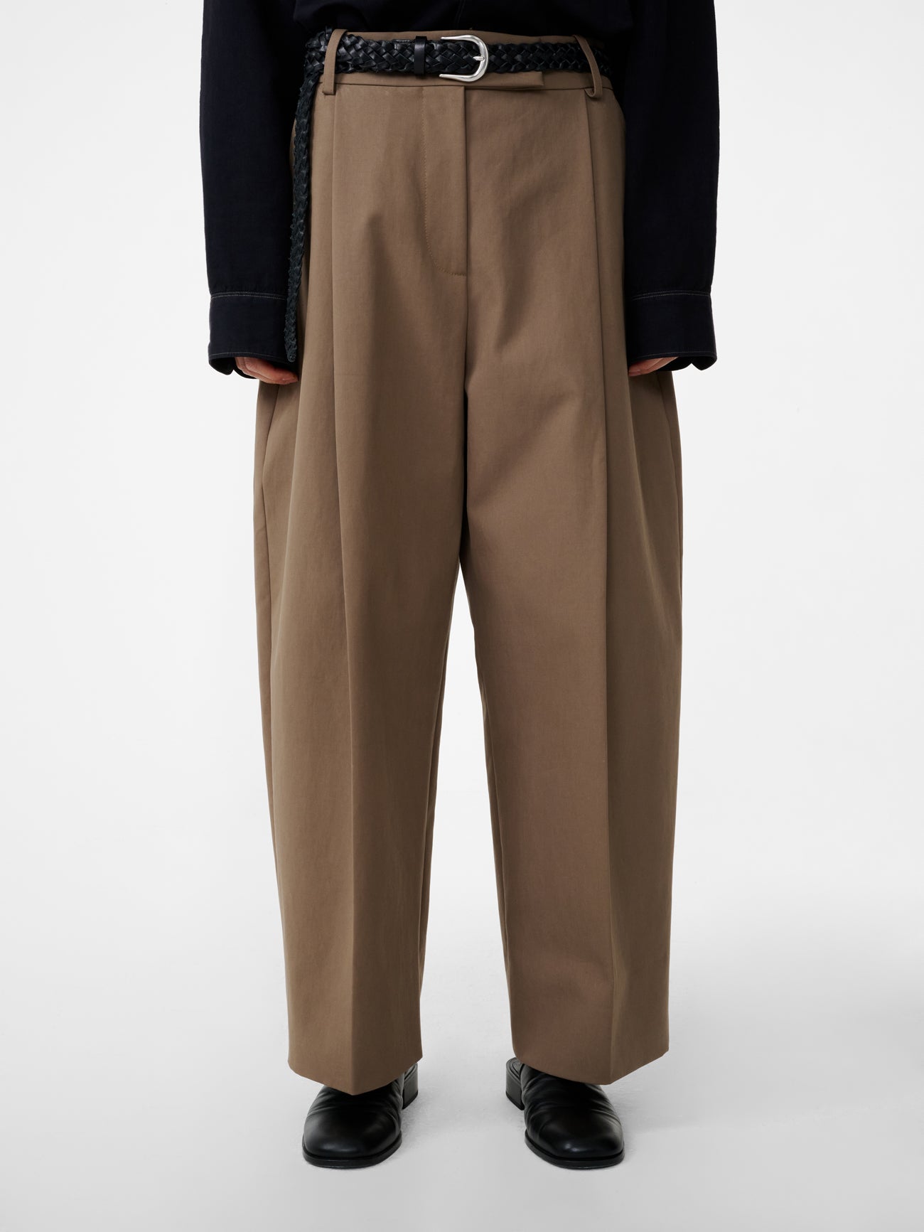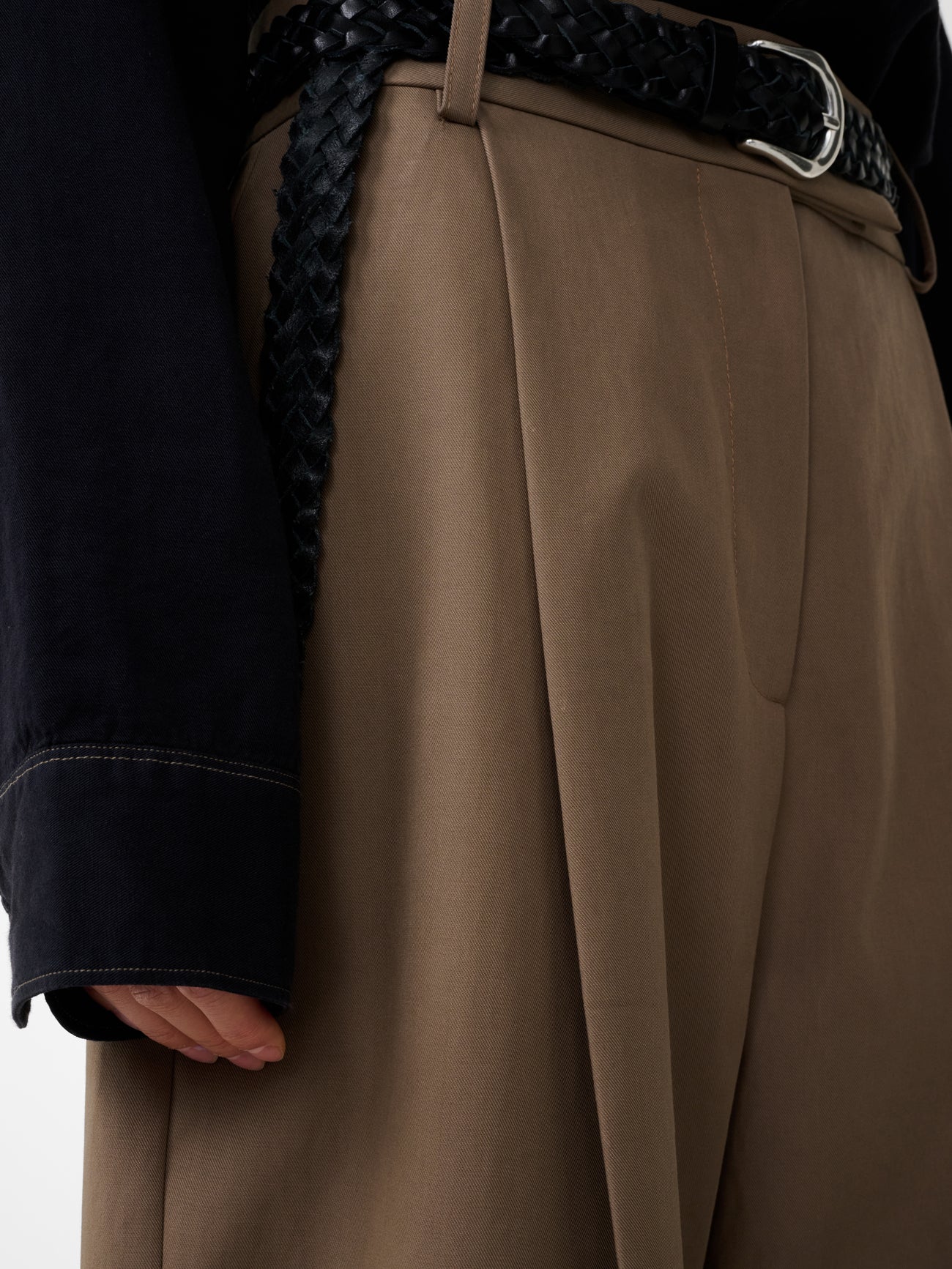 An easy-to-wear wardrobe staple, the Nasser wide leg trousers are cut from our vintage twill: an Italian-milled double construction of fine cotton yarns selected for its compact handle and smooth finish. Fitted with single reverse pleats, they have generous volume in the leg that recalls the slouchy yet sophisticated tailoring prevalent in the 80s and 90s.