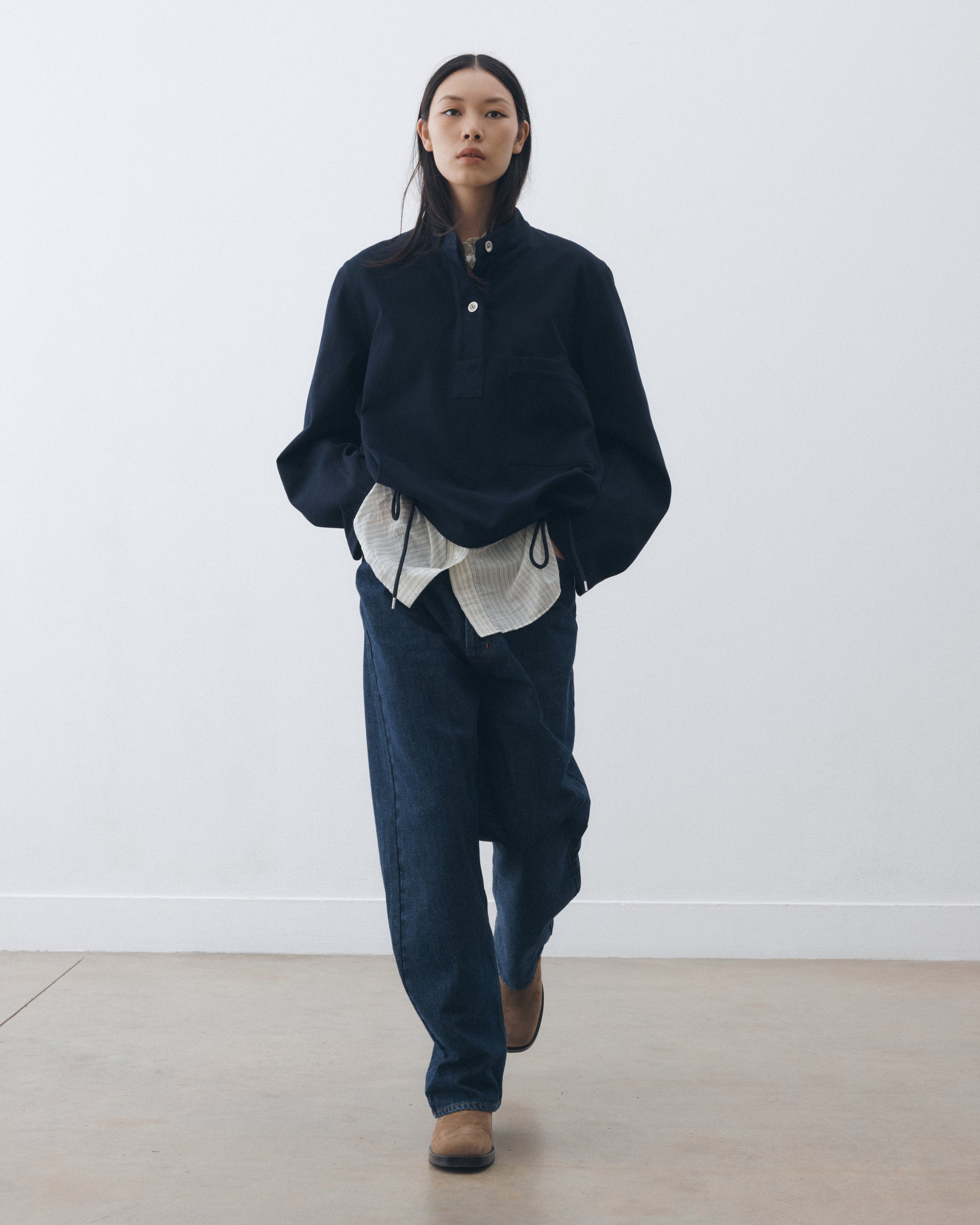 Nick Wakeman, creative director and founder of Studio Nicholson unpicks the various creative threads that led to Spring '26 “It is about how it feels, not how it looks,” says Wakeman on the jumping off point for the season. The idea of ease - and the idea of clothes that work effortlessly on the body - coupled with the feeling of fabric against skin, continue to be central to the design process. “We are always building on and reiterating the Studio Nicholson silhouettes and shapes, which of course are also ultimately about creating feelings, particularly when you move in them,”