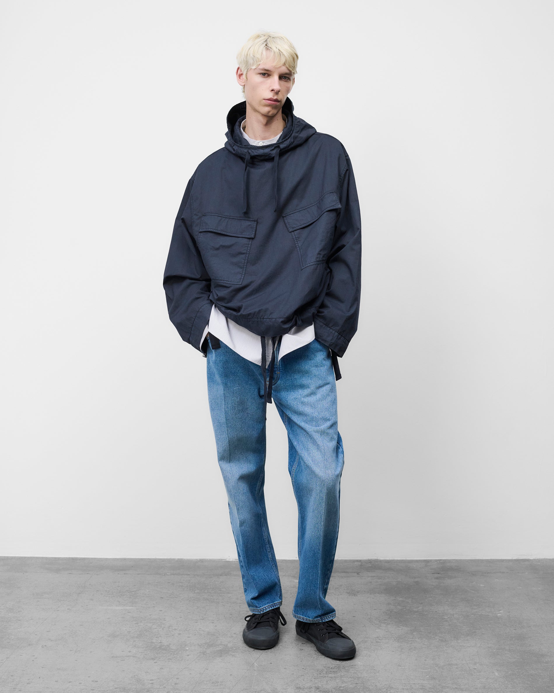 Combining Studio Nicholson’s sophisticated, fabric-first approach to modern classics with Aaron Levine’s rugged Americana sensibilities and expert understanding of vintage, the resulting 26-piece collection is rich with reimagined silhouettes and luxurious fabrications.