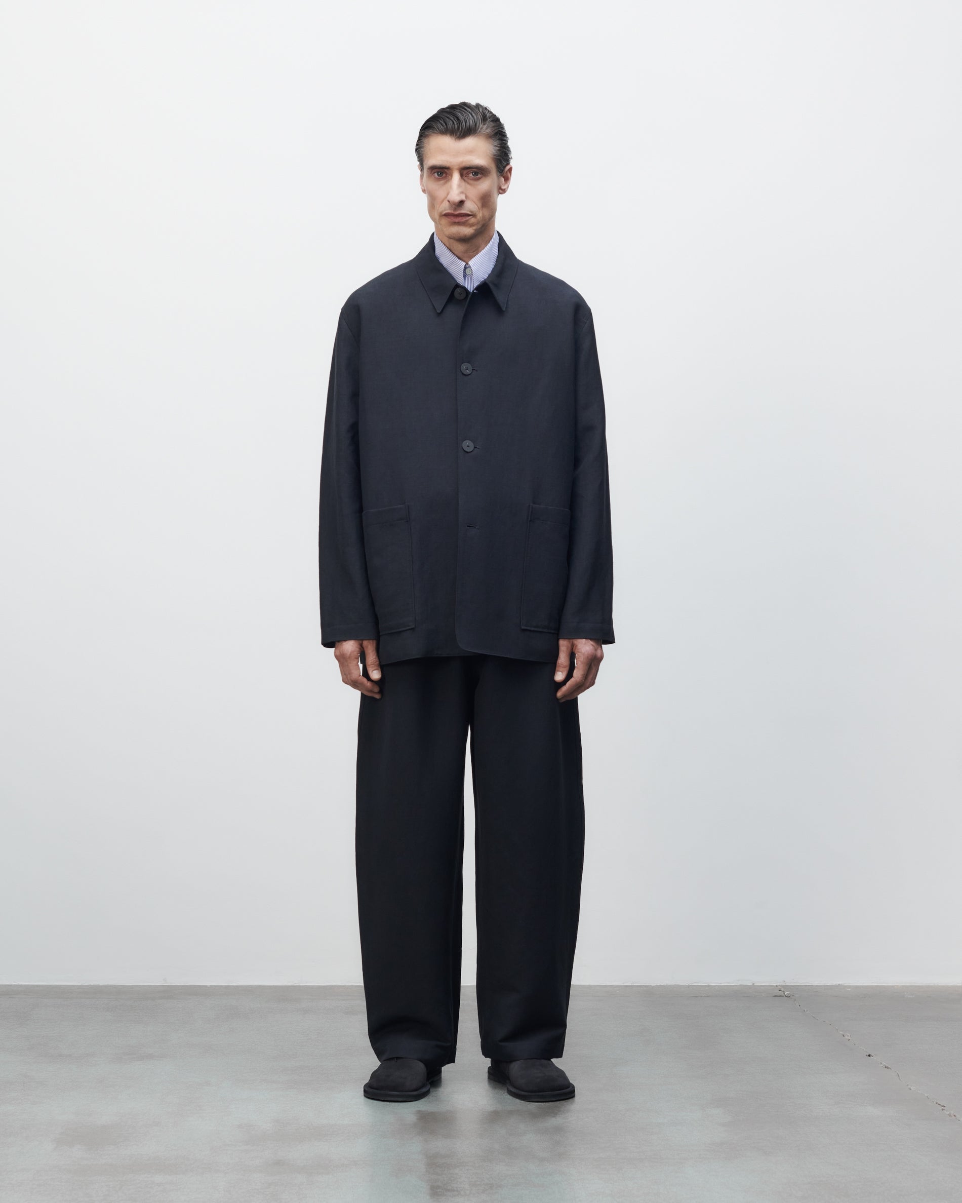 The casual Nopi jacket captures Studio Nicholson’s relaxed tailoring. Inspired by a Japanese jacket from Nick Wakeman’s personal collection, it’s cut from a linen and wool blend that’s noted for its slubbed, uneven quality and soft antique handle. Nopi is constructed with workwear-inspired patch pockets and a straight hem.