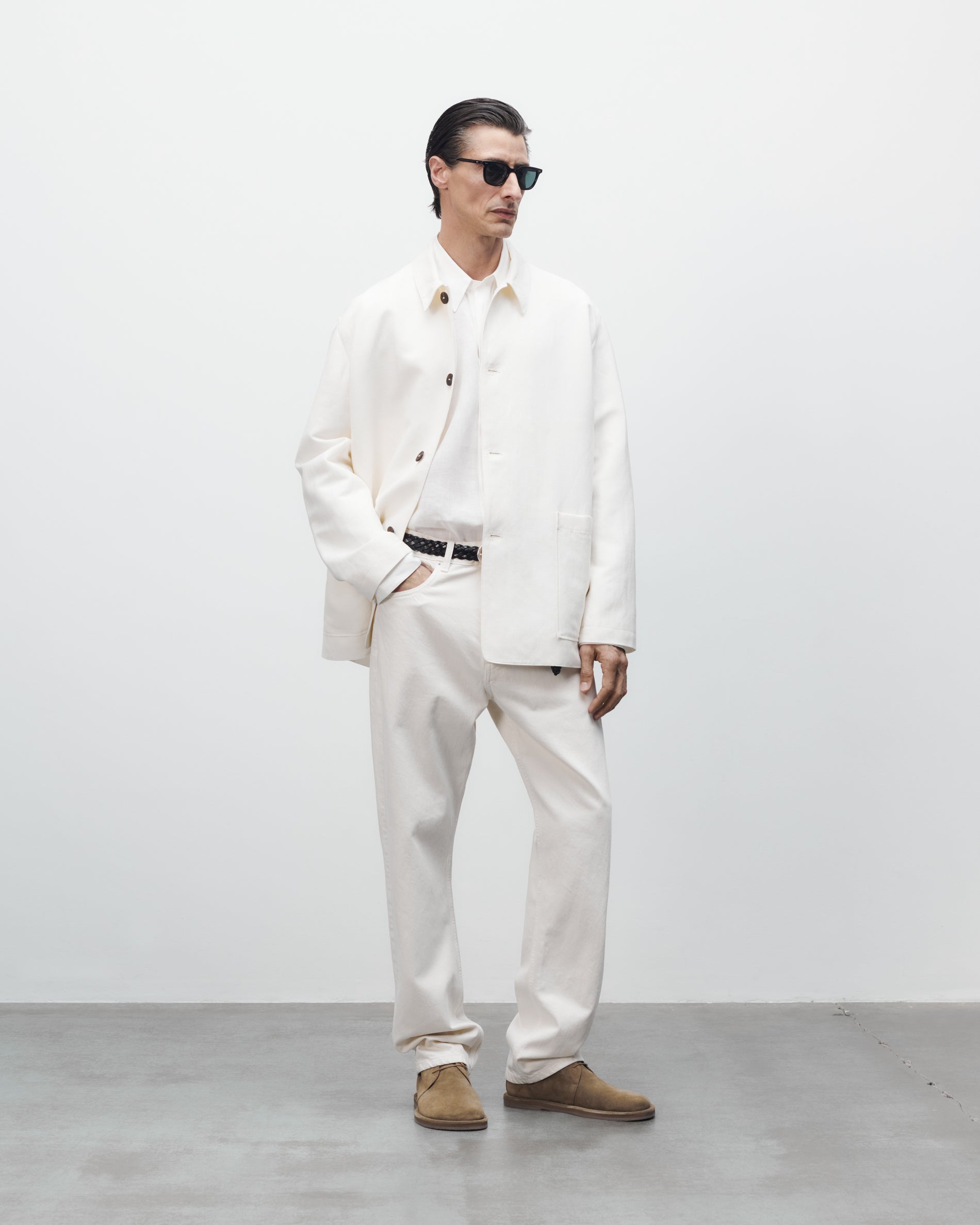 The casual Nopi jacket captures Studio Nicholson’s relaxed tailoring. Inspired by a Japanese jacket from Nick Wakeman’s personal collection, it’s cut from a linen and wool blend that’s noted for its slubbed, uneven quality and soft antique handle. Nopi is constructed with workwear-inspired patch pockets and a straight hem.