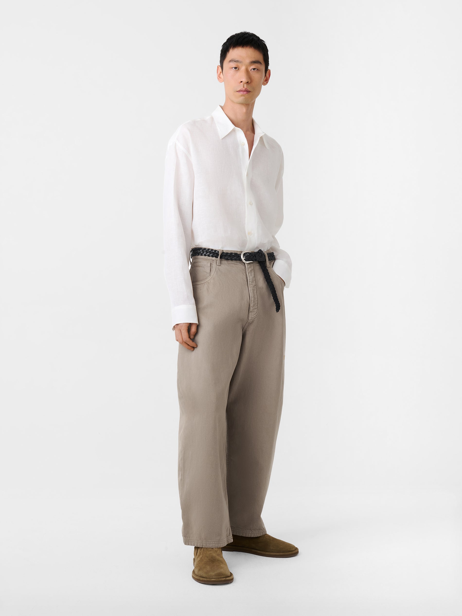 The Paolo jeans have a wide, balloon-shaped leg which creates a striking silhouette yet remain versatile and highly wearable, straddling the gap between tailored and casual. This pair is cut from cotton denim that’s garment-dyed to ensure richness of colour.