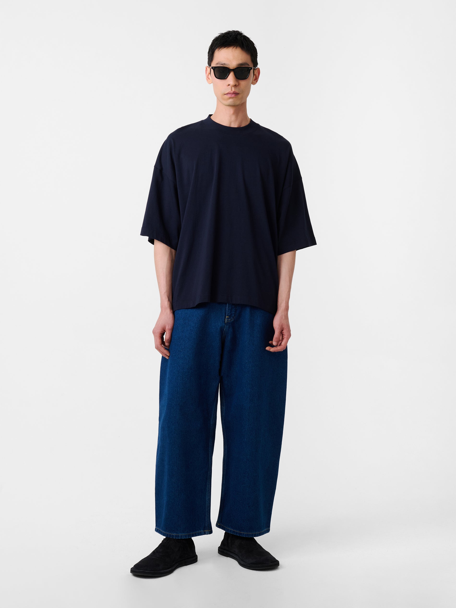 The Paolo jeans have a wide, balloon-shaped leg which creates a striking silhouette yet remain versatile and highly wearable, straddling the gap between tailored and casual. These are cut from a deep indigo-washed denim.