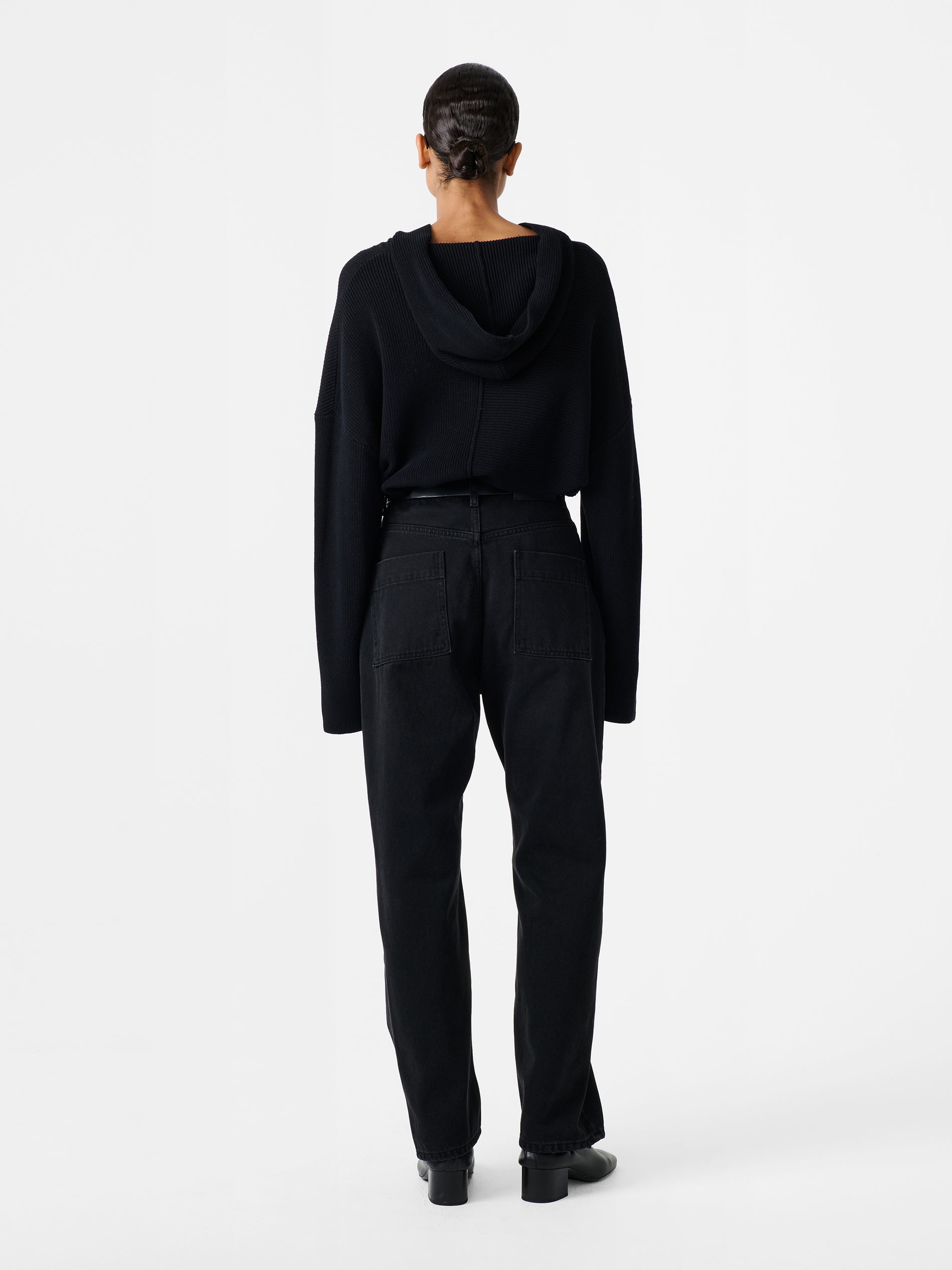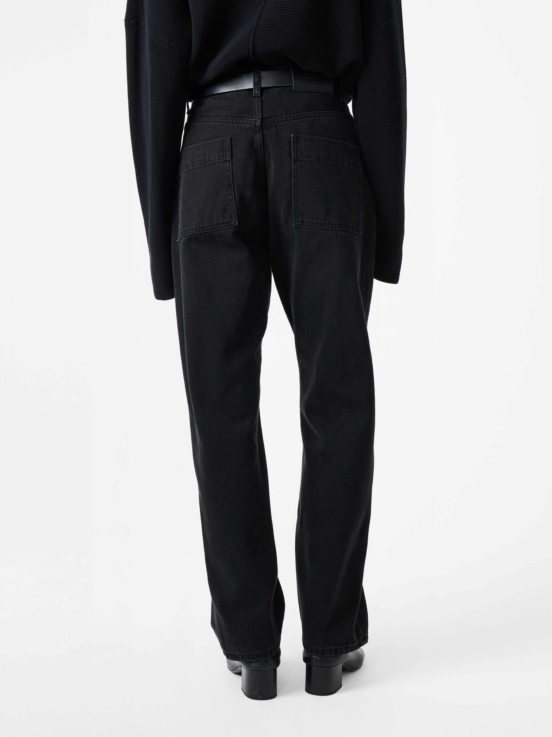 A true SN classic, Ruthe takes a high-waisted denim style and adds a curved shape through the leg. This version is crafted from regenerative cotton woven into a rich washed-black denim, made from 14oz washed denim, it offers a heavier, more traditional feel.