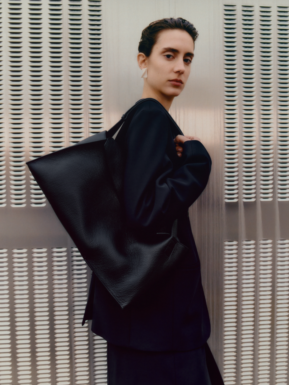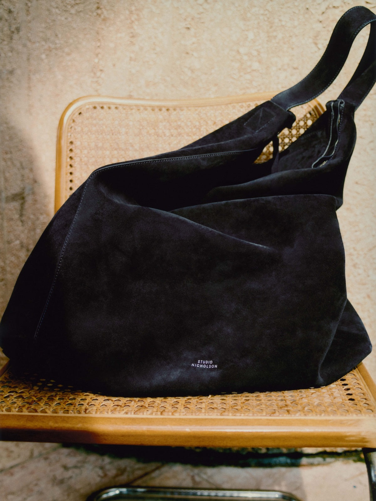 Our bag collection is a unique reflection of shapes found in our ready-to-wear collections. Crafted from a grained calf leather and a soft, tactile suede. All styles are thoughtfully designed, using no hardware and are produced in Italy and Spain using premium leathers.