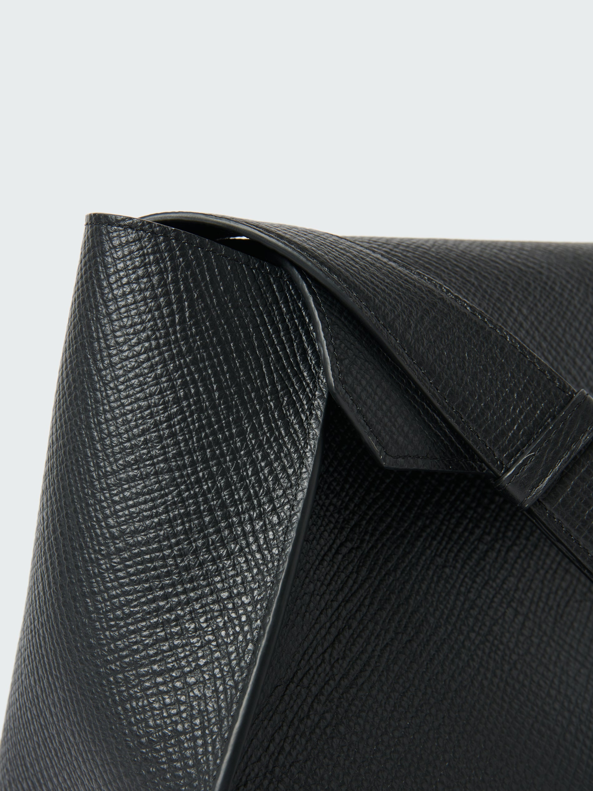 The Shiboru - meaning ‘to squeeze’ in Japanese - offers a relaxed take on a trapezium form. The construction combines perpendicular lines with the curved, permitting the bag to slouch when worn. Just two corners are fully seamed with a hand-painted edge whilst an adjustable shoulder strap is secured from the other opposing curved corners. The Shiboru’s folded concealed magnetic closure further allows the structure to determine its functionality.