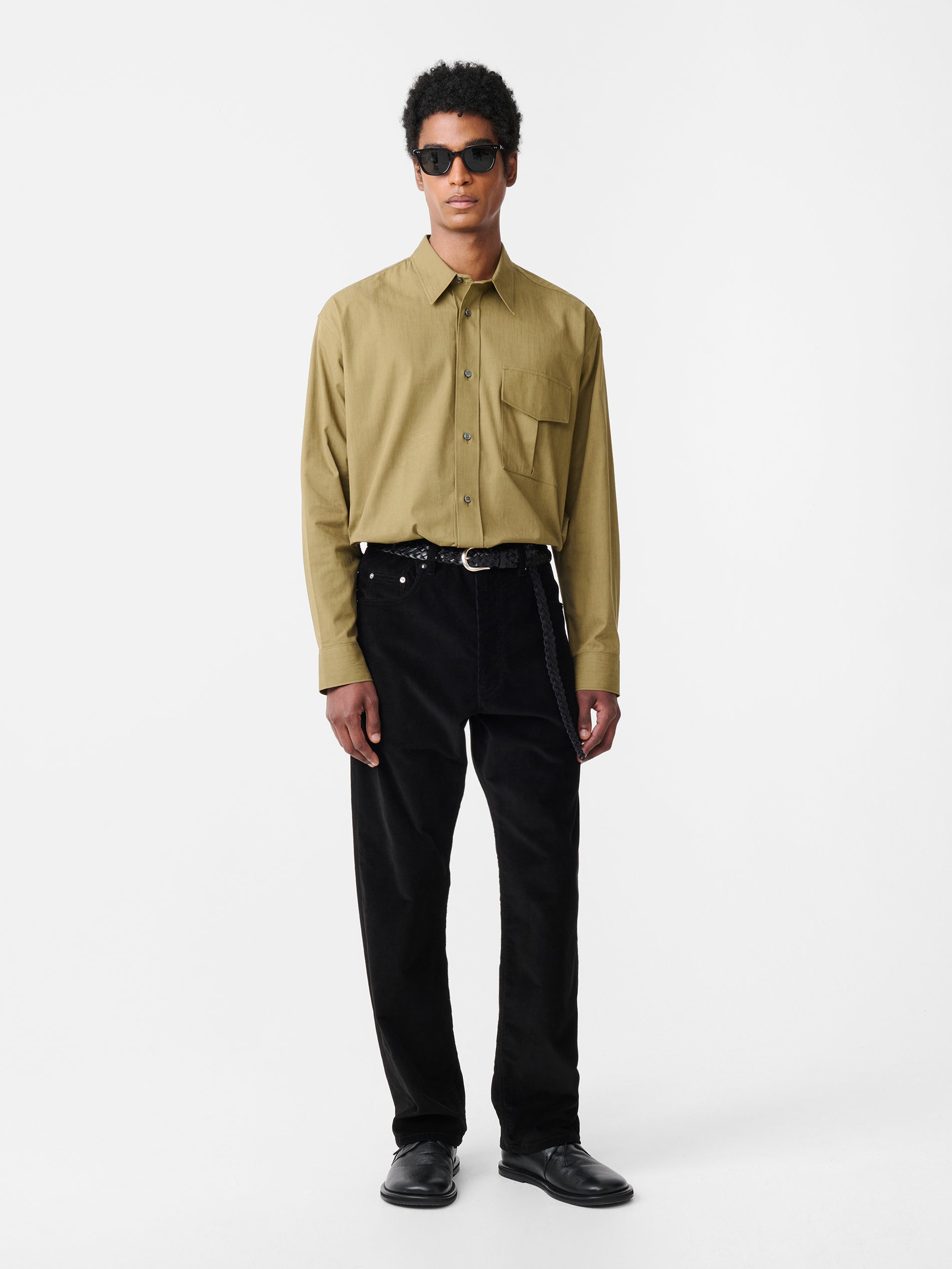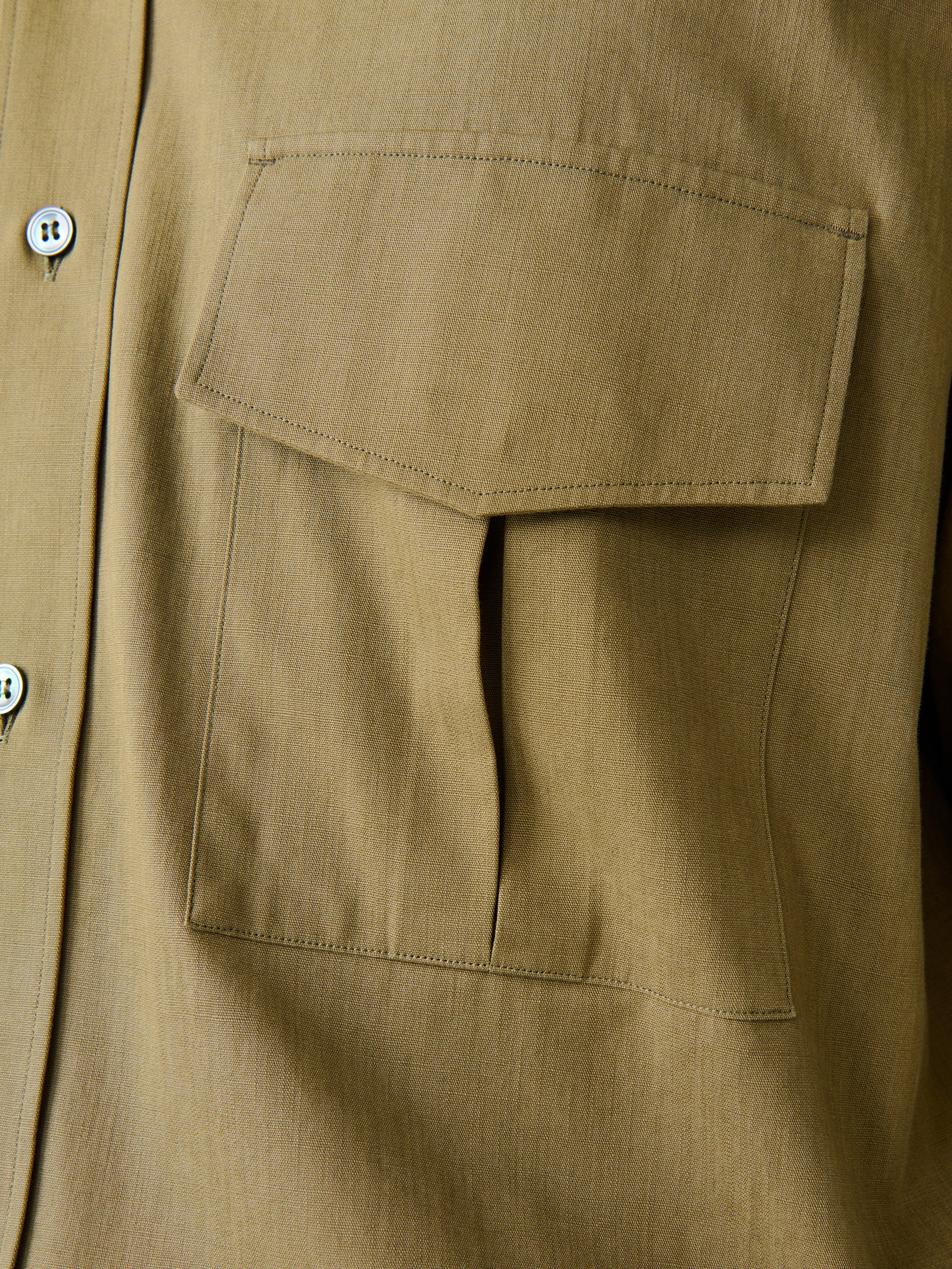 The Solst shirt is cut from our slub vintage cotton: an Italian-milled fabric noted for its compact weave and an irregular hand feel that recalls Studio Nicholson’s workwear influences. Constructed with a point collar and dropped shoulders, it features a pleated flap pocket inspired by vintage military uniforms.